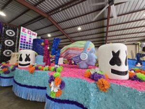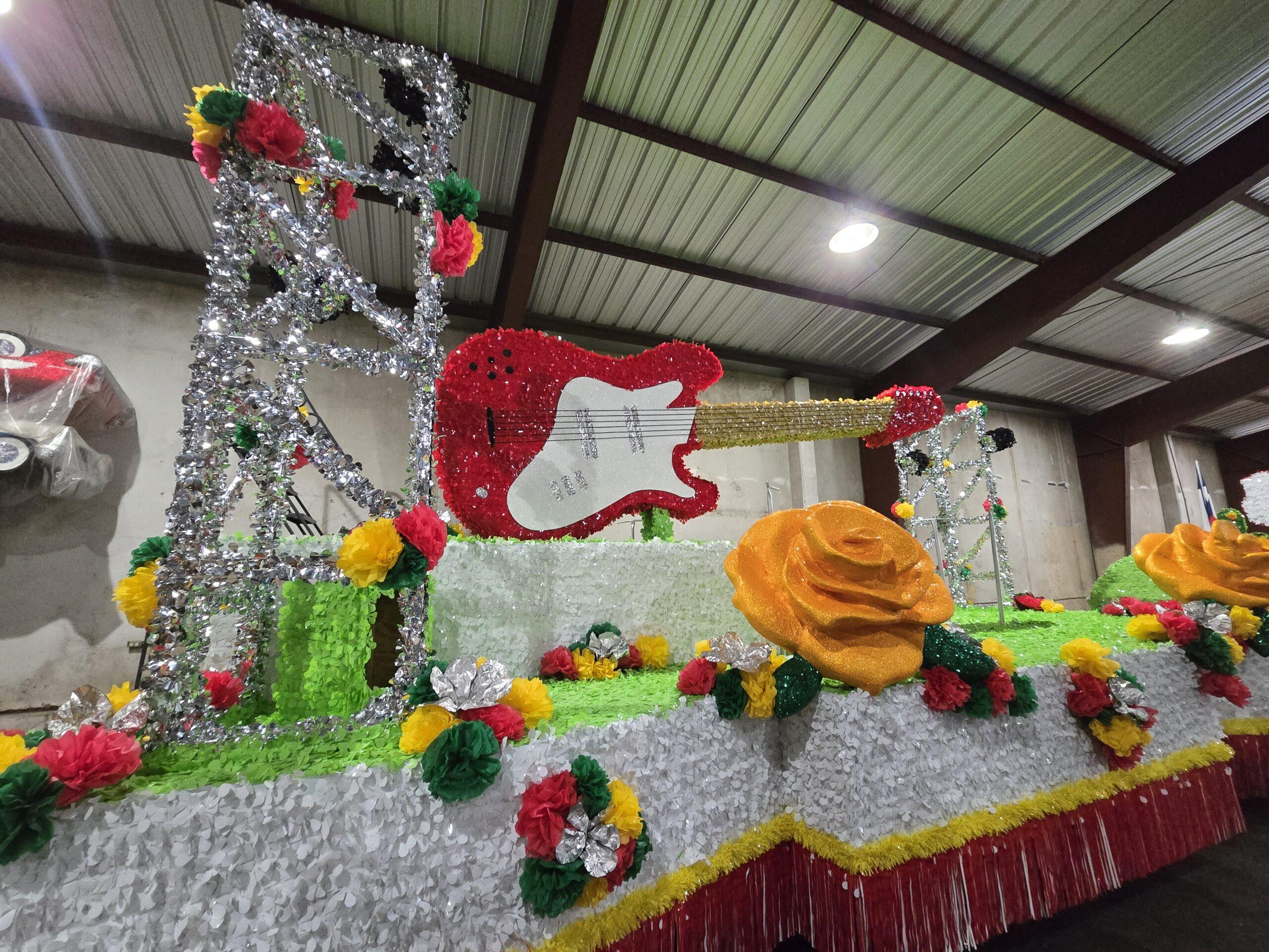 Each school-themed float harmonizes music genres with florals, paying tribute to Texas’s musical giants and community roots: