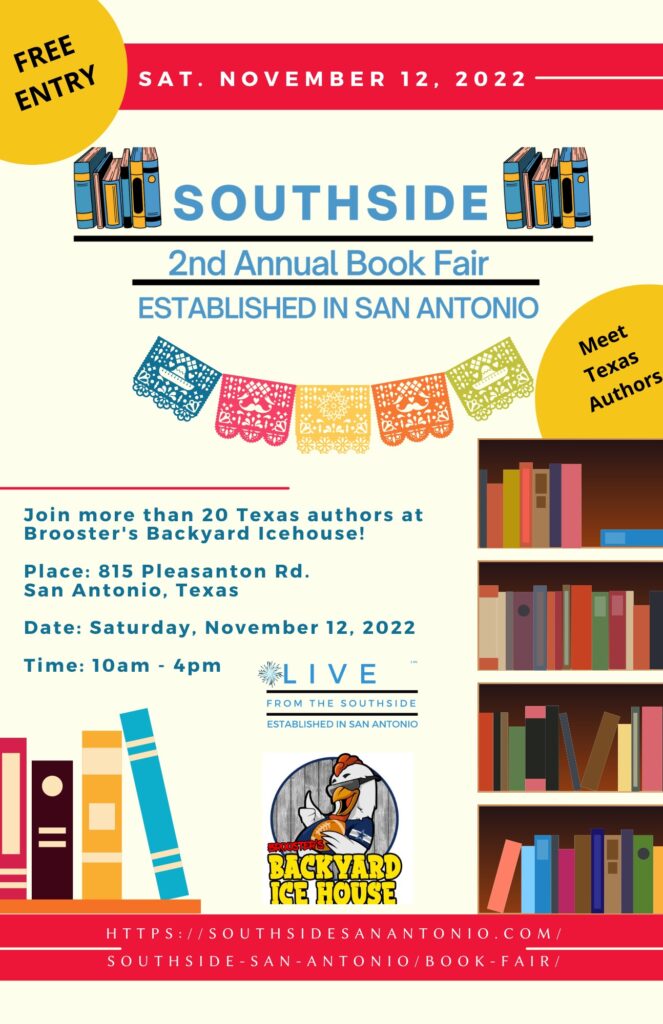 The 2nd Annual Southside Book Fair will be held on November 12, 2022, from 10 a.m.-4 p.m. Come and meet local Texas authors. Esteemed and award-winning authors from the Southside and throughout Texas will be there to meet visitors and sign and sell their books. The Twig Book Shop will be there selling the authors books and also be there helping promote literacy. And, The Witte Museum will also be in attendance to share their local writers who have books at the museum.