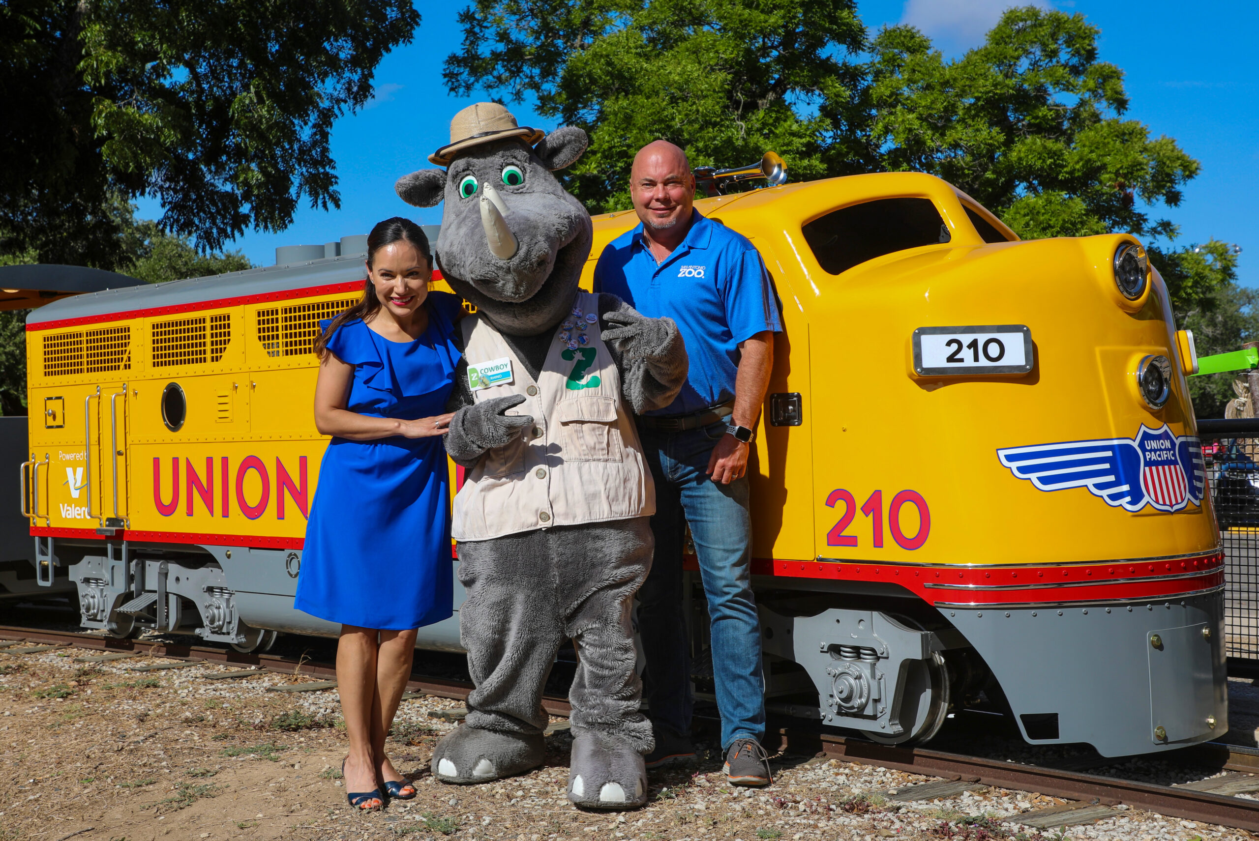 All Aboard! The San Antonio Zoo welcomed the Union Pacific Mini Train to its rail line as it chugged into town at Brackenridge Park. The train was led by Union Pacific Locomotive No. 210, which features the sleek design of Streamliner engines of the 1950s and 1960s. The new diesel train was funded 100% by donations, with the lead naming gift of $300,000 coming from Union Pacific. In addition, each zoo train runs on fuel generously donated by Valero Energy Corporation.