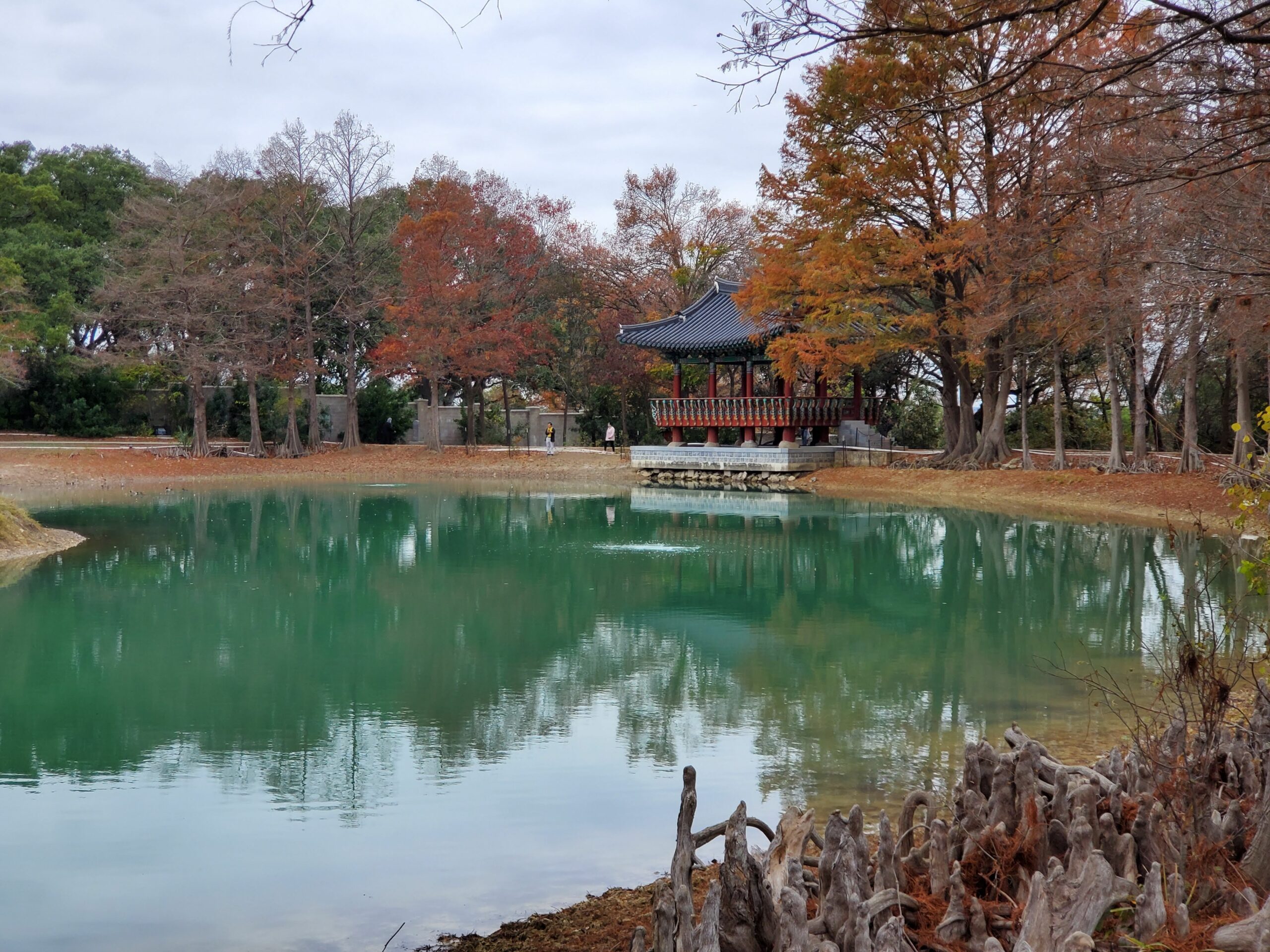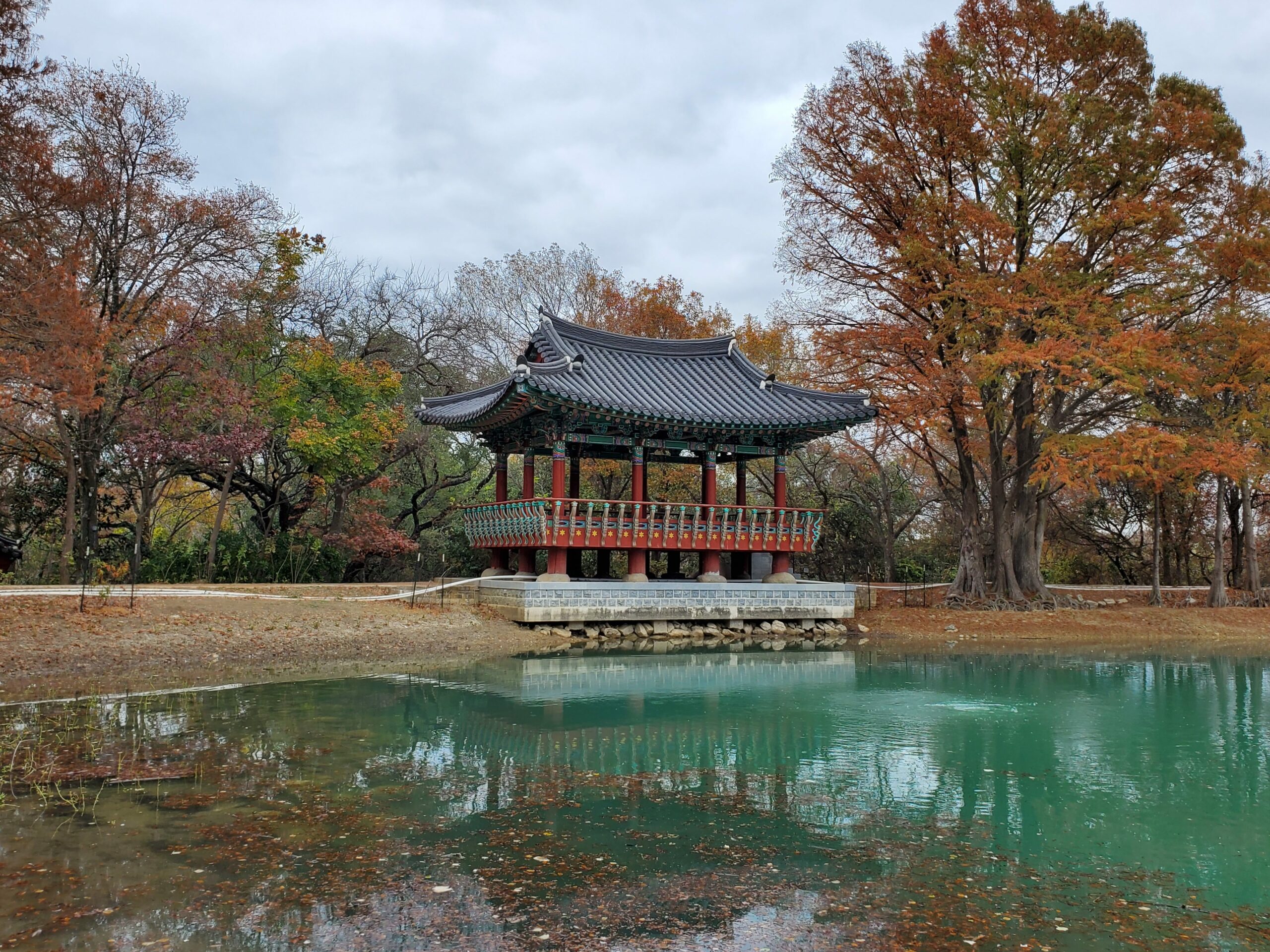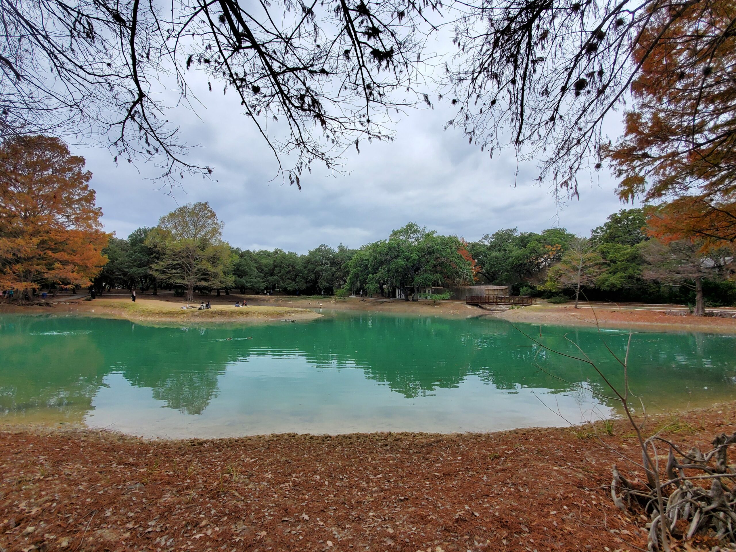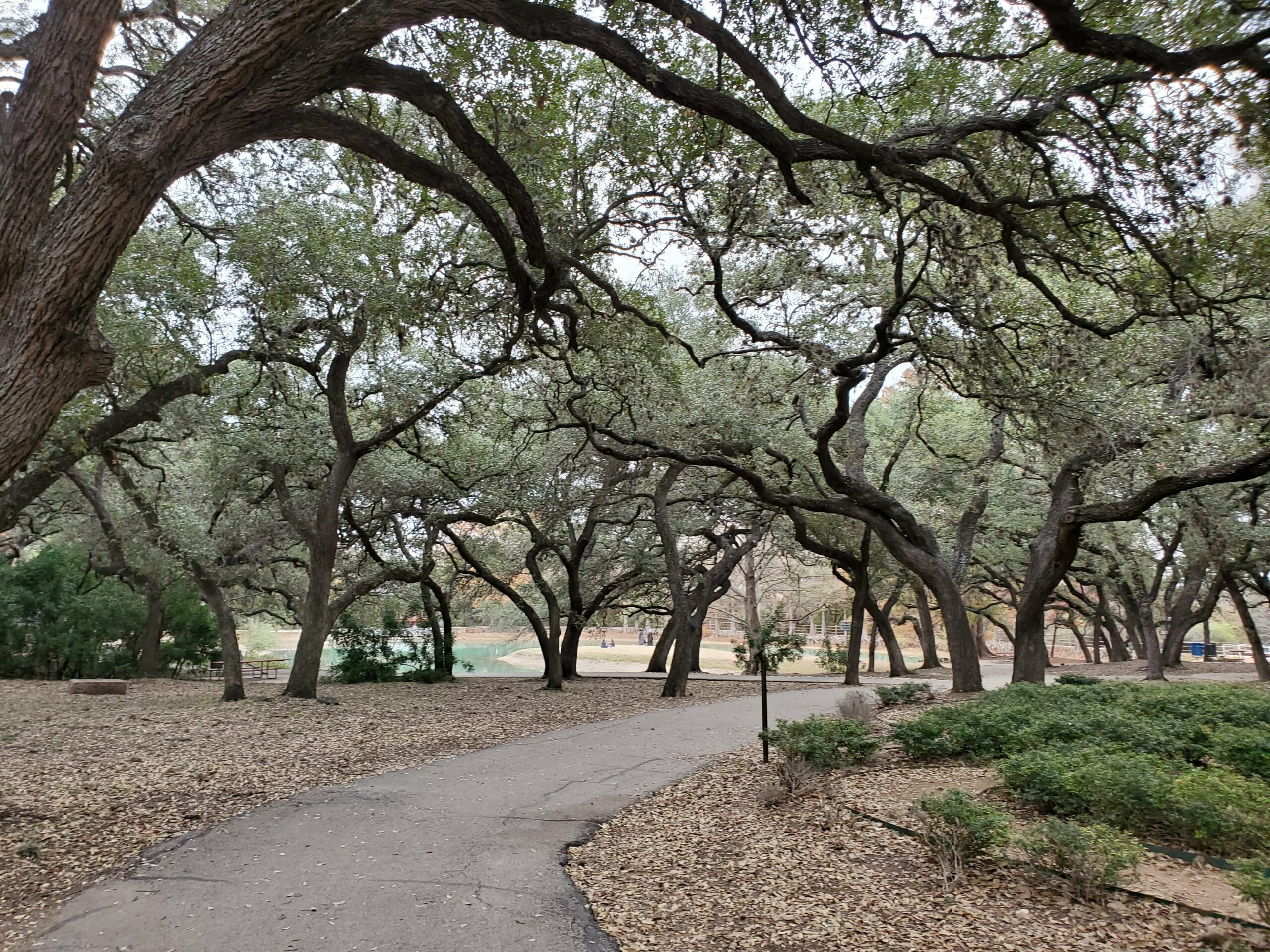 Denman Estate Park is full of trees, trails, has picnic tables to sit at, and a view of a hand-built Gwangju, Korean monument overlooking a pond. Korean craftsmen and artists traveled to San Antonio to assemble it.