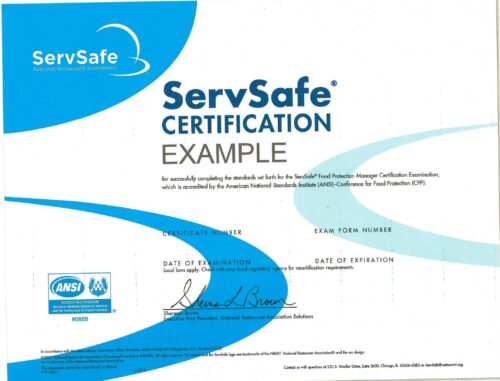 There must be a certified Food Manager present during operation hours, and the certificate must be posted on the wall.