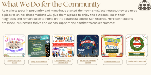 MVES hosts several community markets/events on the Southeast side of San Antonio in the heart of the Monte Viejo community! We are always looking for event vendors and Sponsors!!