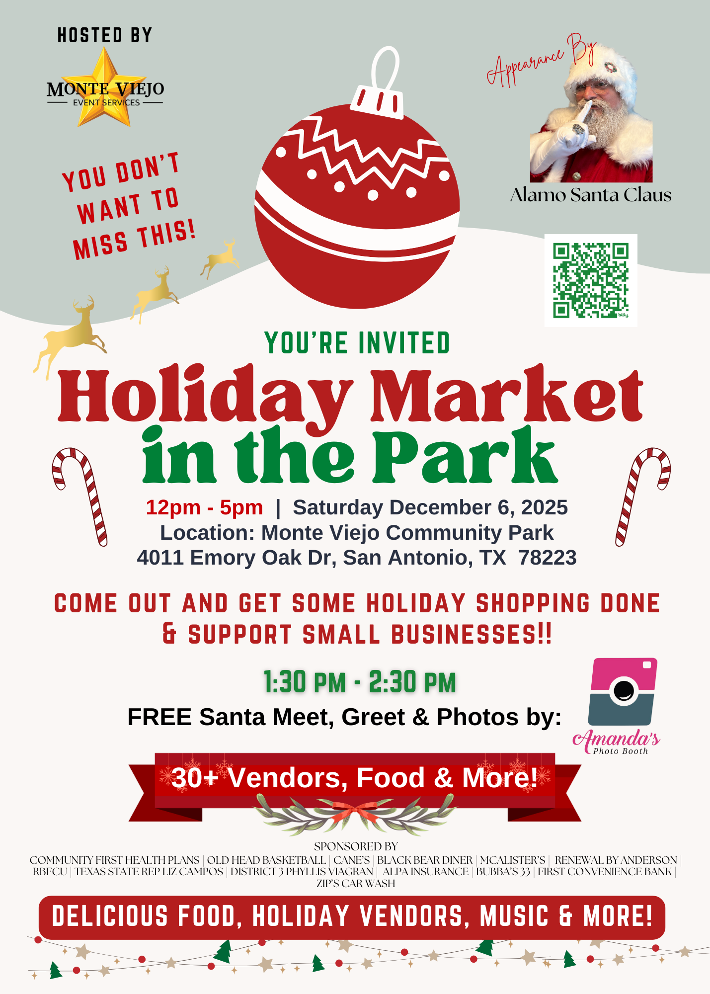 Join us for some fabulous unique crafts and gift ideas at our 4th Annual Monte Viejo Holiday Market in the Park! We will have all types of vendors, from food, merchandise and resource vendors to visit, so come join us!
