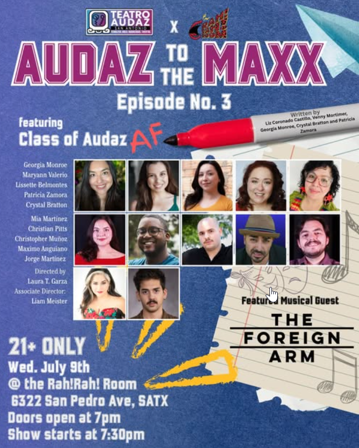 Audaz to the Maxx: Sketchy Nights in San Antonio will be produced by Teatro Audaz in collaboration with the incredibly talented Maximo Anguiano (@blurbsmithblots). We’re bringing something fresh, something unexpected, and something that will have you laughing, thinking, and coming back for more every month!