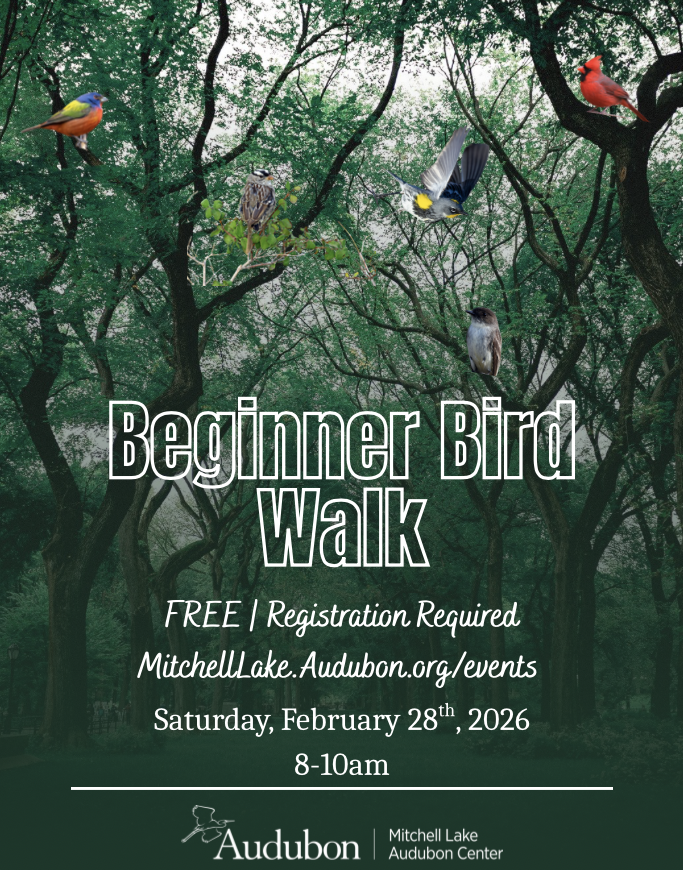 <p>At Mitchell Lake Audubon Center, we host 300+ birds annually on our 1,200-acre sanctuary which includes four diverse habitats for our wildlife: wetlands, woodlands, brushlands and grasslands. Join us every fourth Saturday for Bird Tours designed for the beginning birder. Travelling by foot, your guide will go over birding identification and the proper use of binoculars. This is a family-friendly program best for ages 5+. Advanced birders are also welcome to attend. </p>
