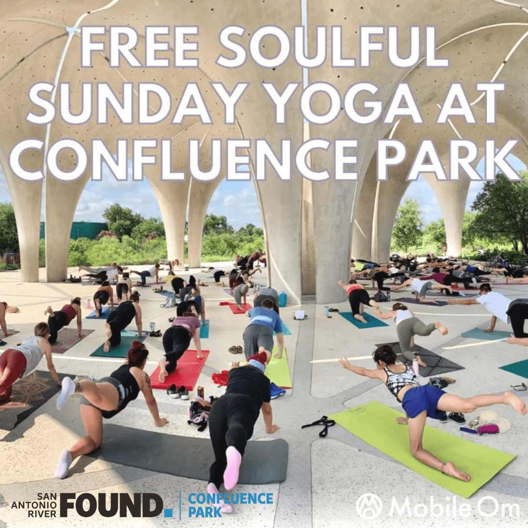 Dreading those Sunday Scaries? We got you covered! Lay out your mat with Mobile Om and the San Antonio River Foundation, Sunday mornings at 10am at Confluence Park. Join us for a for a FREE, all-level 1-hr community yoga flow that will help you release tension, build strength, connect to nature and empower you to have a more productive and calmer week ahead.
