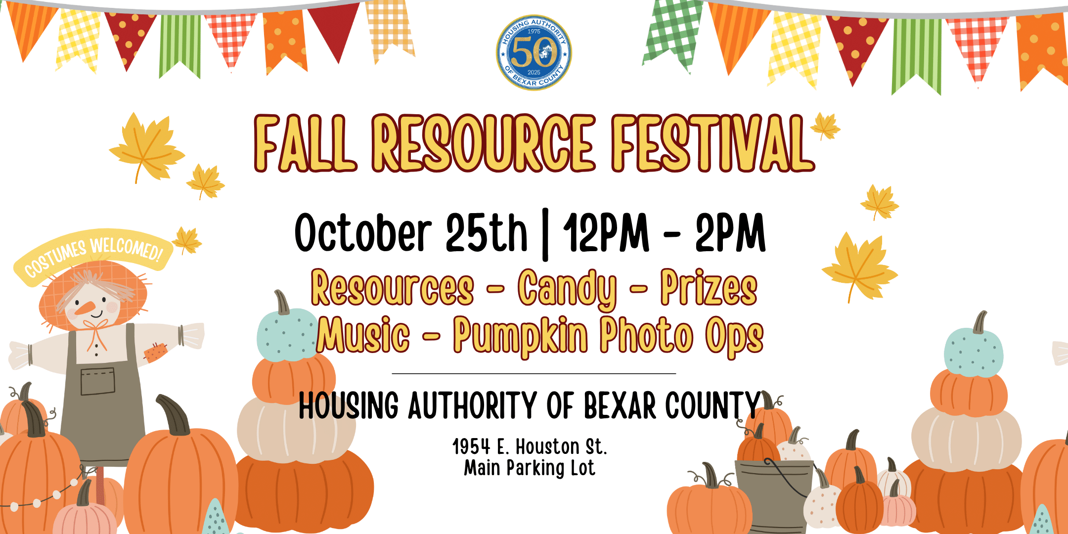 Join us on October 25, 2025, from noon to 2 pm for our Fall Resource Fair! You can connect with local community resources in healthcare, education, food assistance, housing, financial assistance, job placement, and more! Dress the kiddos up for a little pre-Halloween trick-or-treating! We will have a DJ, door prizes, and snacks!