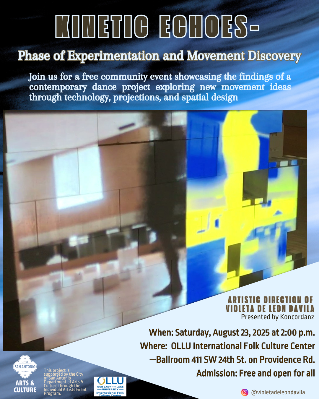<p>Kinetic Echoes: Phase of Experimentation and Movement Discovery—a contemporary dance project exploring new movement ideas through technology, projections, and spatial design.<br />