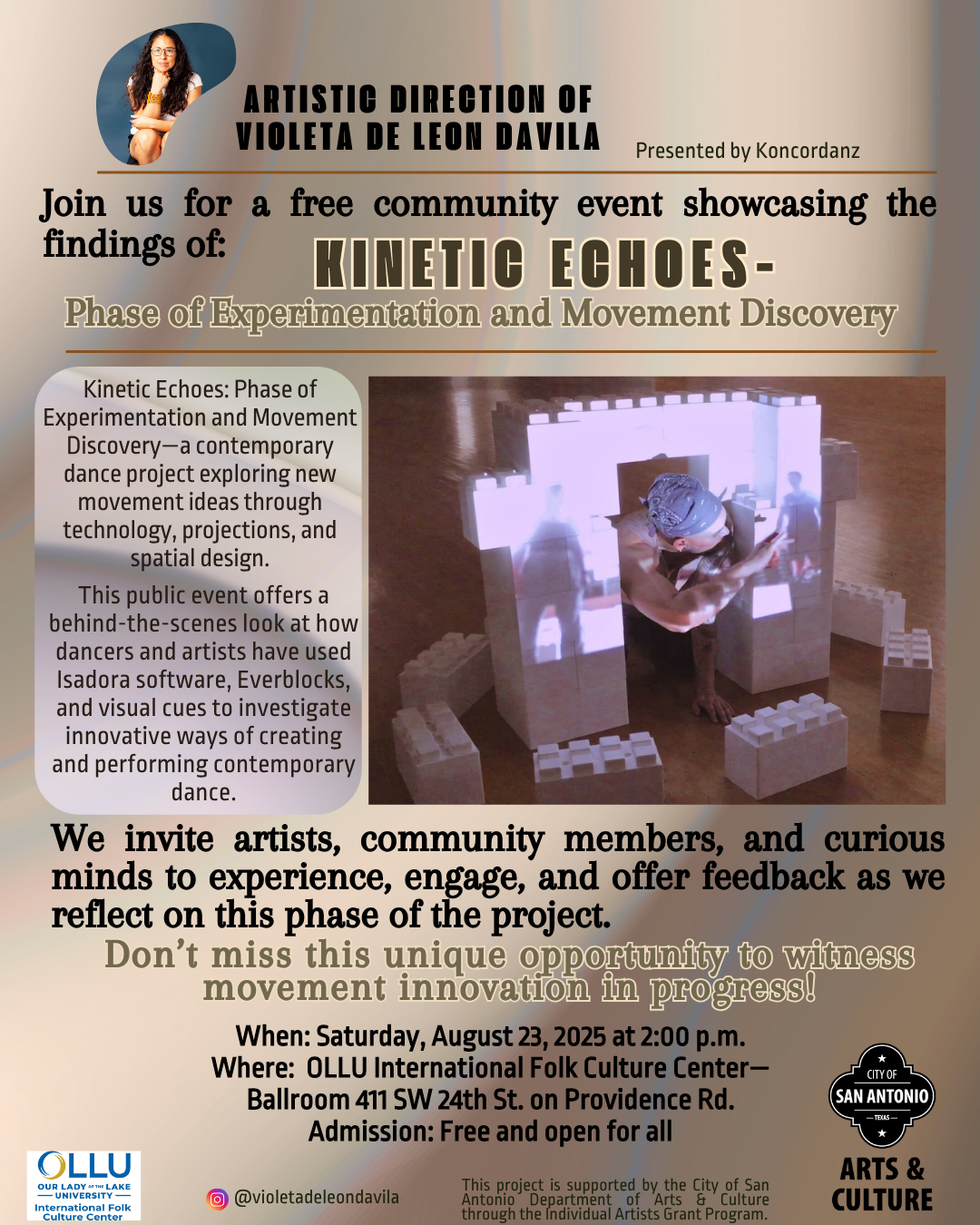 <p>Kinetic Echoes: Phase of Experimentation and Movement Discovery—a contemporary dance project exploring new movement ideas through technology, projections, and spatial design.</p>