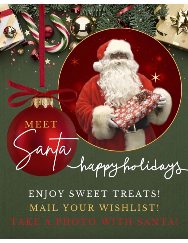 ‘Tis the season to make magical memories! Join us for a holly, jolly, good time with Santa. Snap a pic, mail your wishlist, and enjoy a sweet treat! 5:30 pm to 7:30 pm
