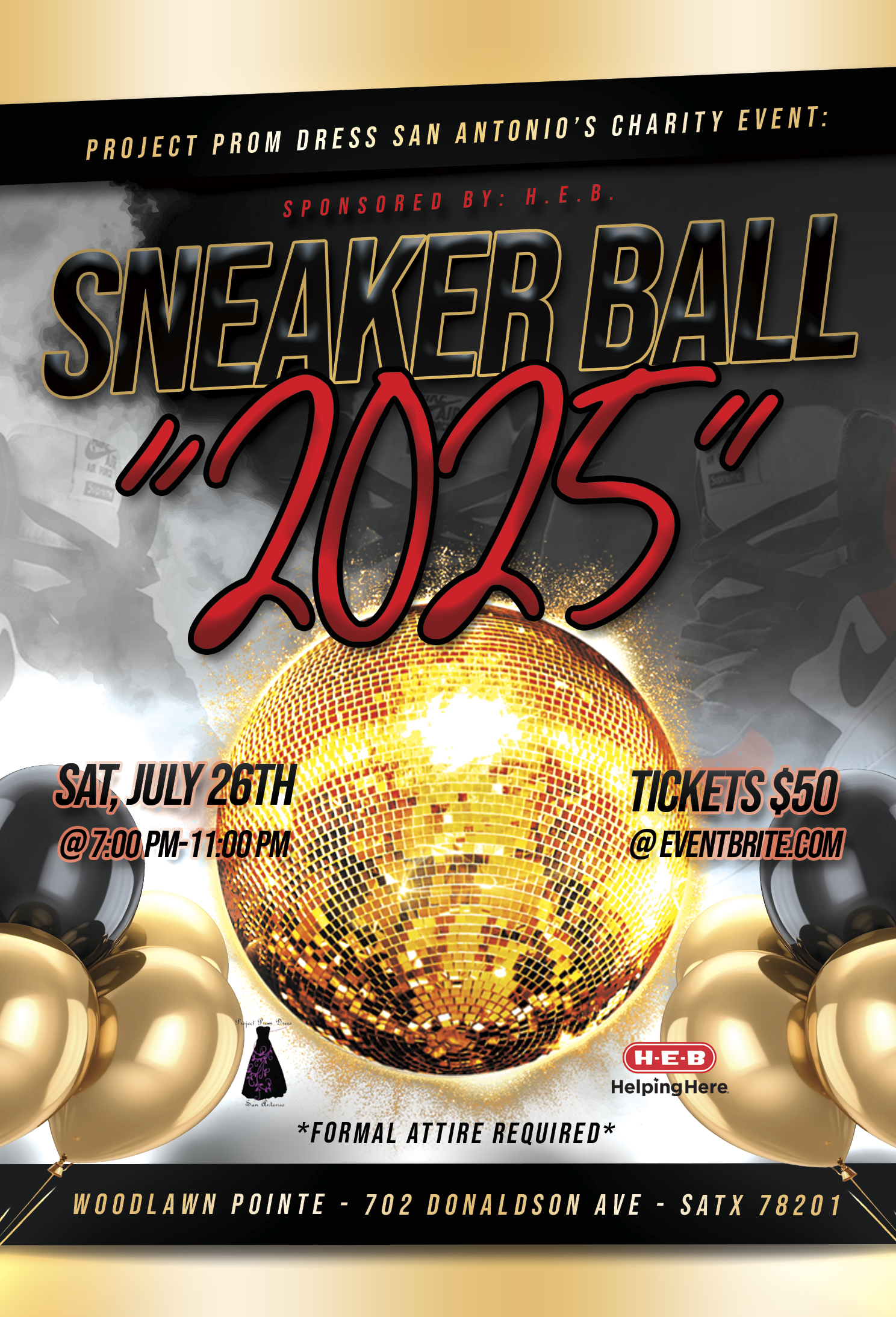 Dress to impress in your best formal wear and sneakers! Proceeds benefit Project Prom Dress San Antonio, a 501(c)3 nonprofit, that provides area teens with free formal wear. Tickets $50 each on Eventbrite. BYOB