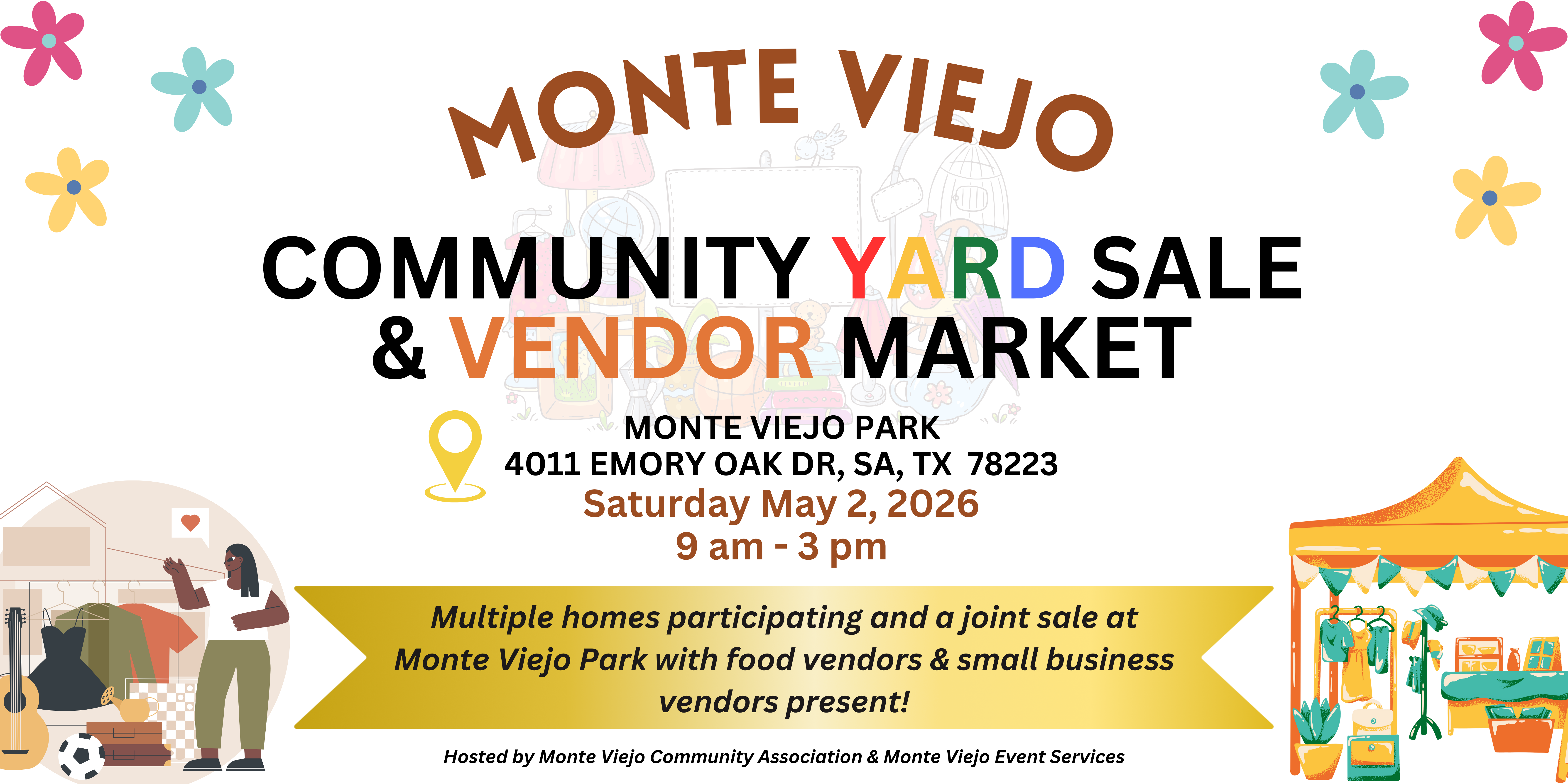 We will once again be at Monte Viejo Park for our Annual Community Yard Sale & Vendor Market where shoppers can come find something old and something new! Many homeowners from the 78223 area will be out selling their items alongside small business vendors as well! This is a RAIN OR SHINE event so we will be happening regardless of weather =)