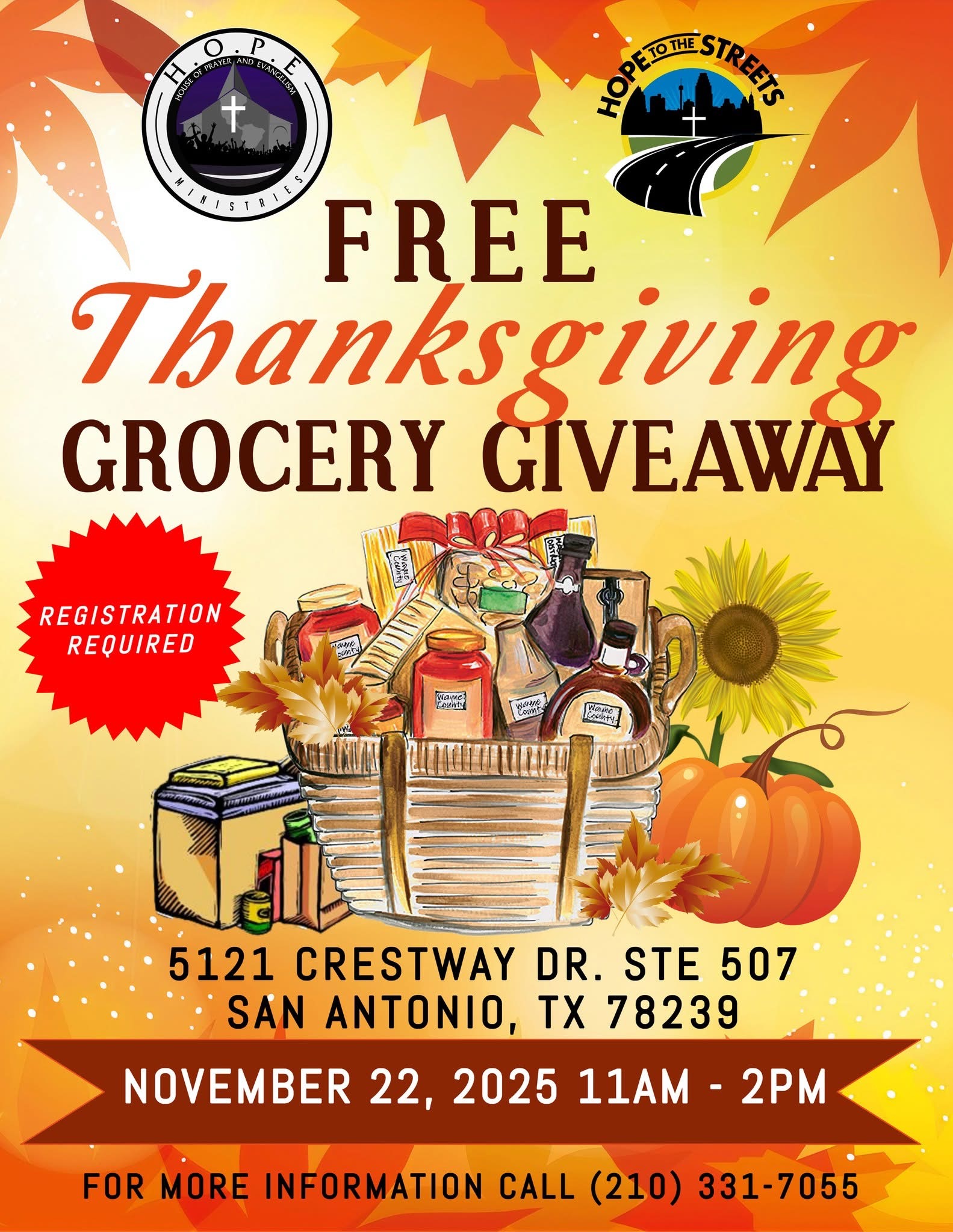 My brothers and sisters I want to invite you to our annual Free Thanksgiving Grocery Giveaway, hosted by Hope Ministries Saturday, November 22, 2025 from 11 to 2