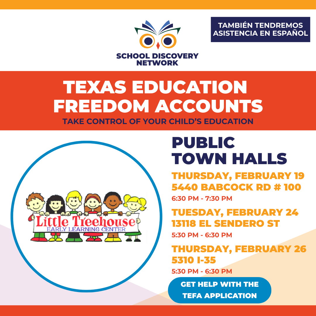 <p>School Discovery Network to host bilingual Public Town Hall Series to facilitate conversation about the Texas Education Freedom Account program, which delivers up to $30,000 annually to cover costs associated with private schooling, homeschool and supportive services.</p>