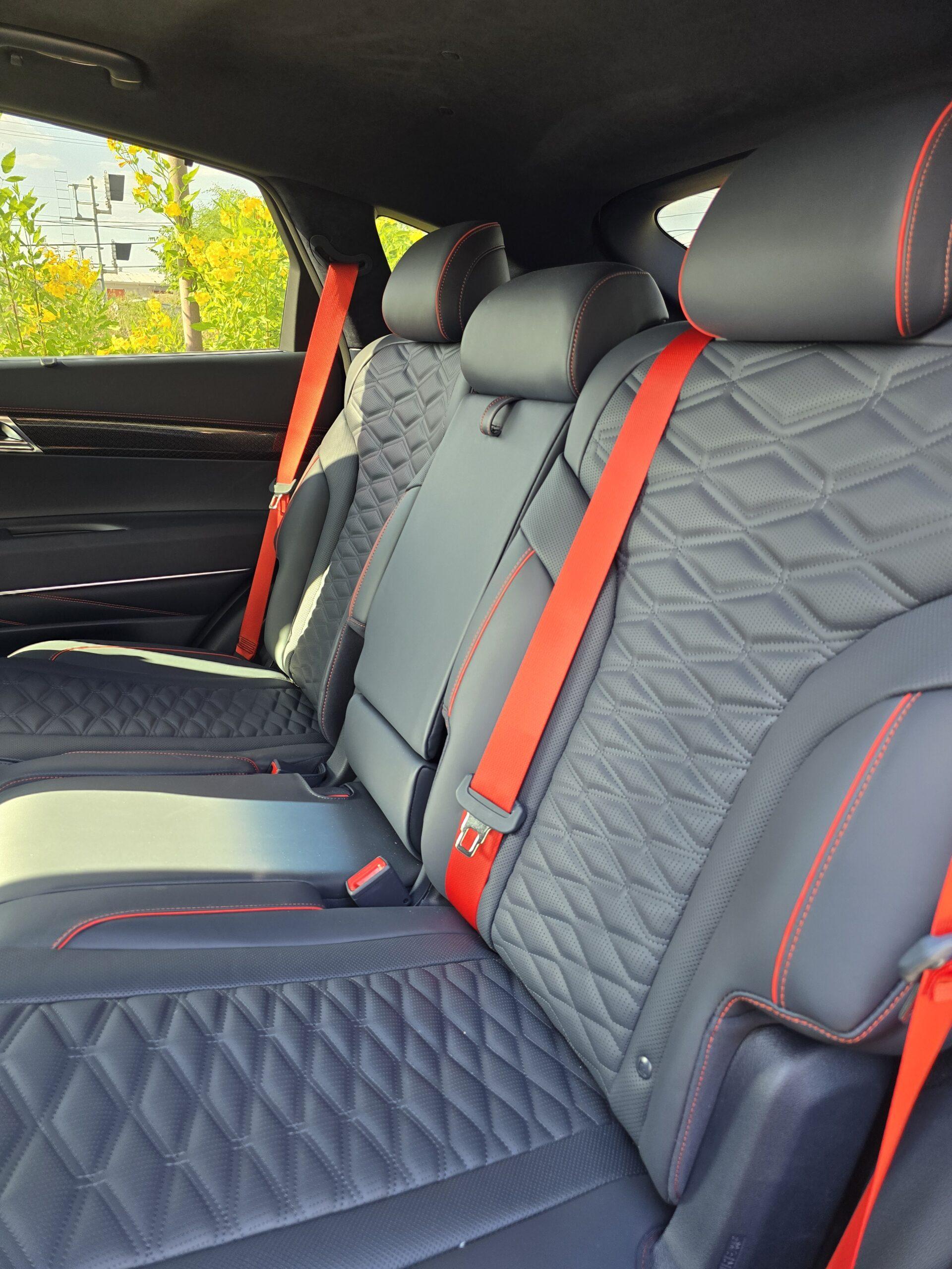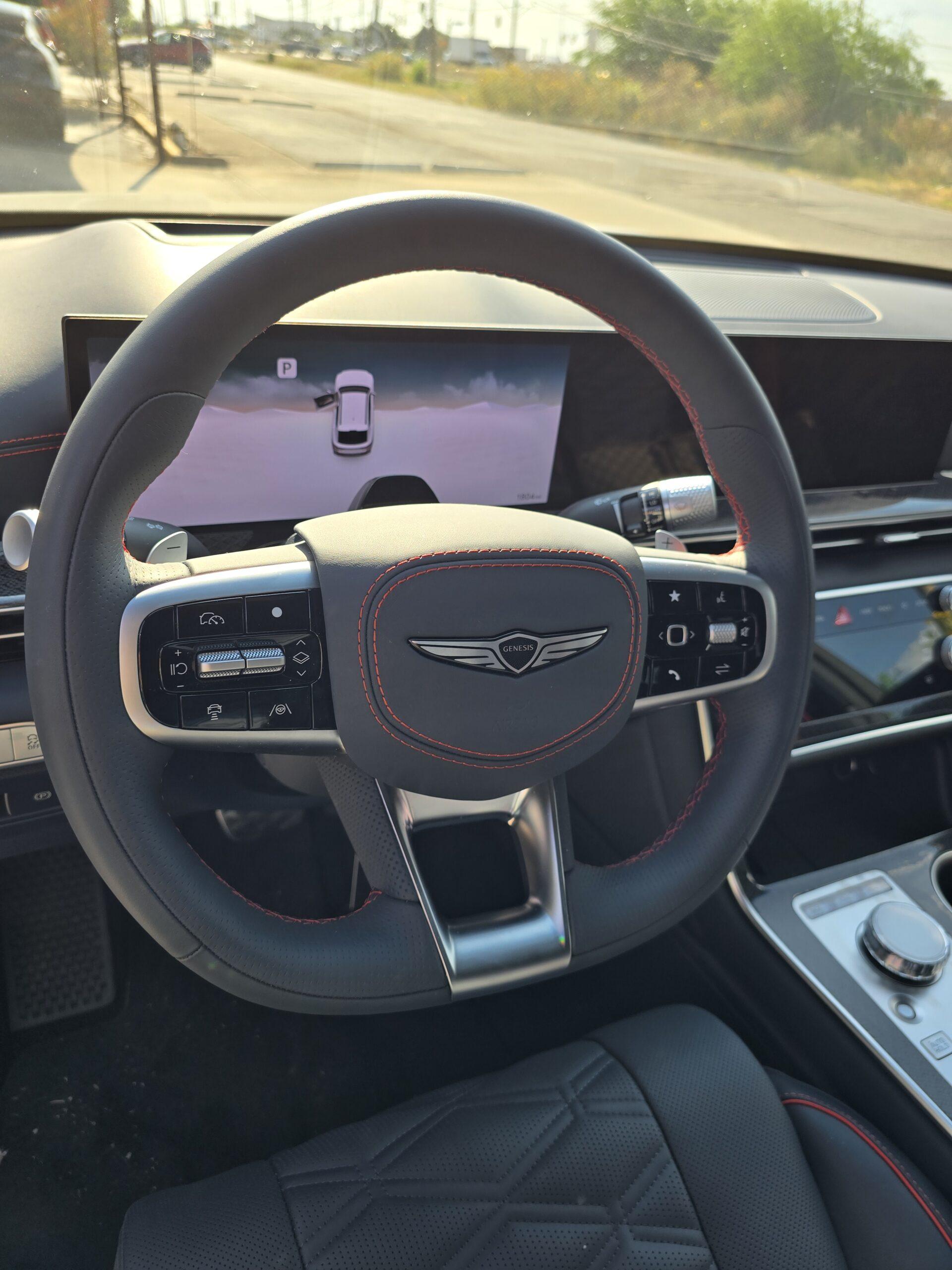 Inside, we experienced the GV80 with a striking black interior accented with red trim, making every detail feel bold and dynamic. The 27-inch widescreen OLED display, premium materials, and thoughtful design create a cabin that is both luxurious and inviting. Leather seating surfaces, ventilated and heated front seats, and the Ergo Motion driver’s seat provide comfort and support for every journey.