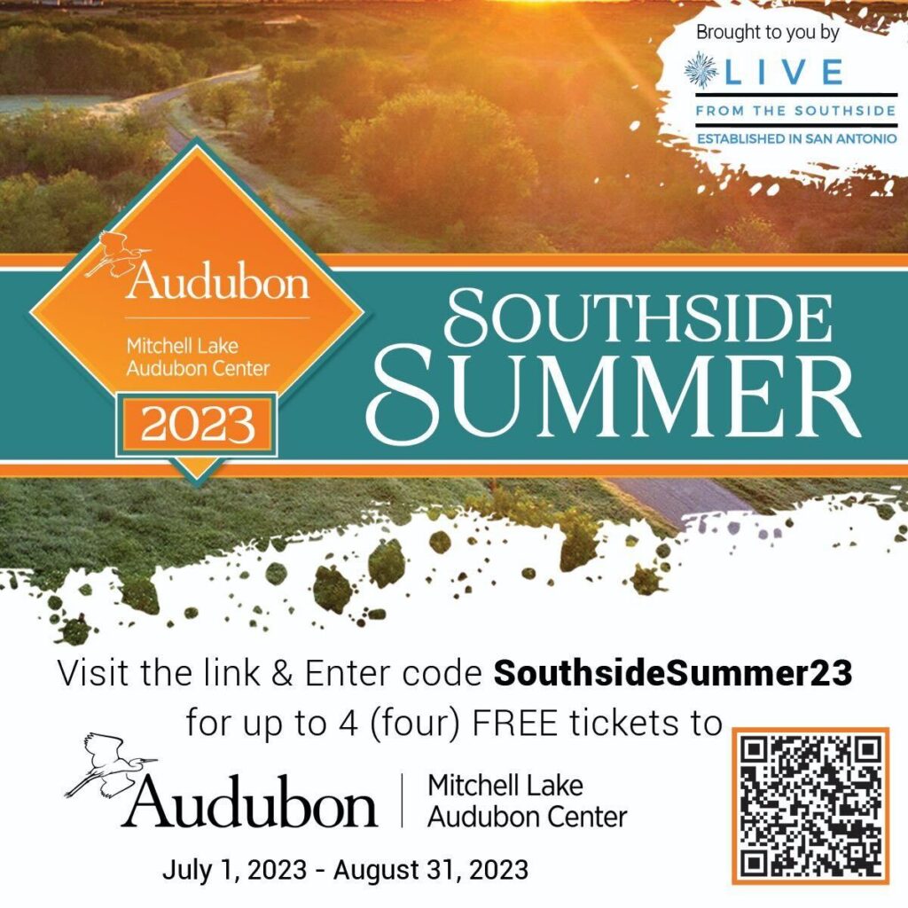 Mitchell Lake Audubon Center is excited to partner with Live From The Southside Magazine to encourage San Antonio residents to get outside on the south side with up to four (4) free entry tickets per visit for San Antonio residents with discount code SouthsideSummer23, starting July 1 through August 31.