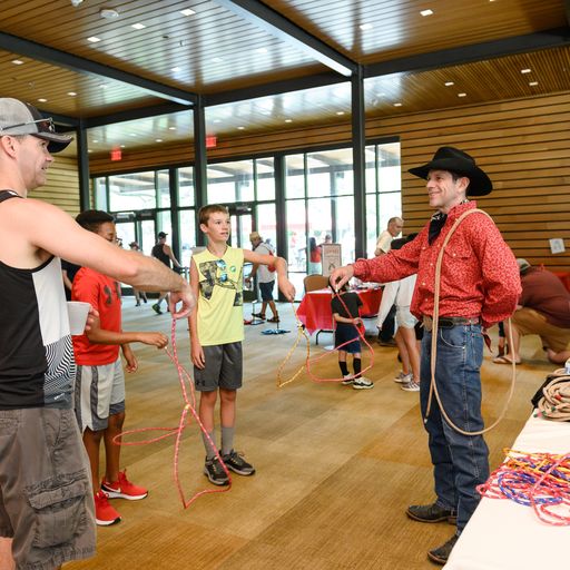 - Cowpoke games and crafts, where you can outfit yer’self in a bolo tie and spurs, try your hand at silversmith etching, make a stick pony and try out some barrel racing, learn how to rope and ride, herd some balloon animals, do a little bull riding, toss horseshoes, craft a cowhand puppet and more.
