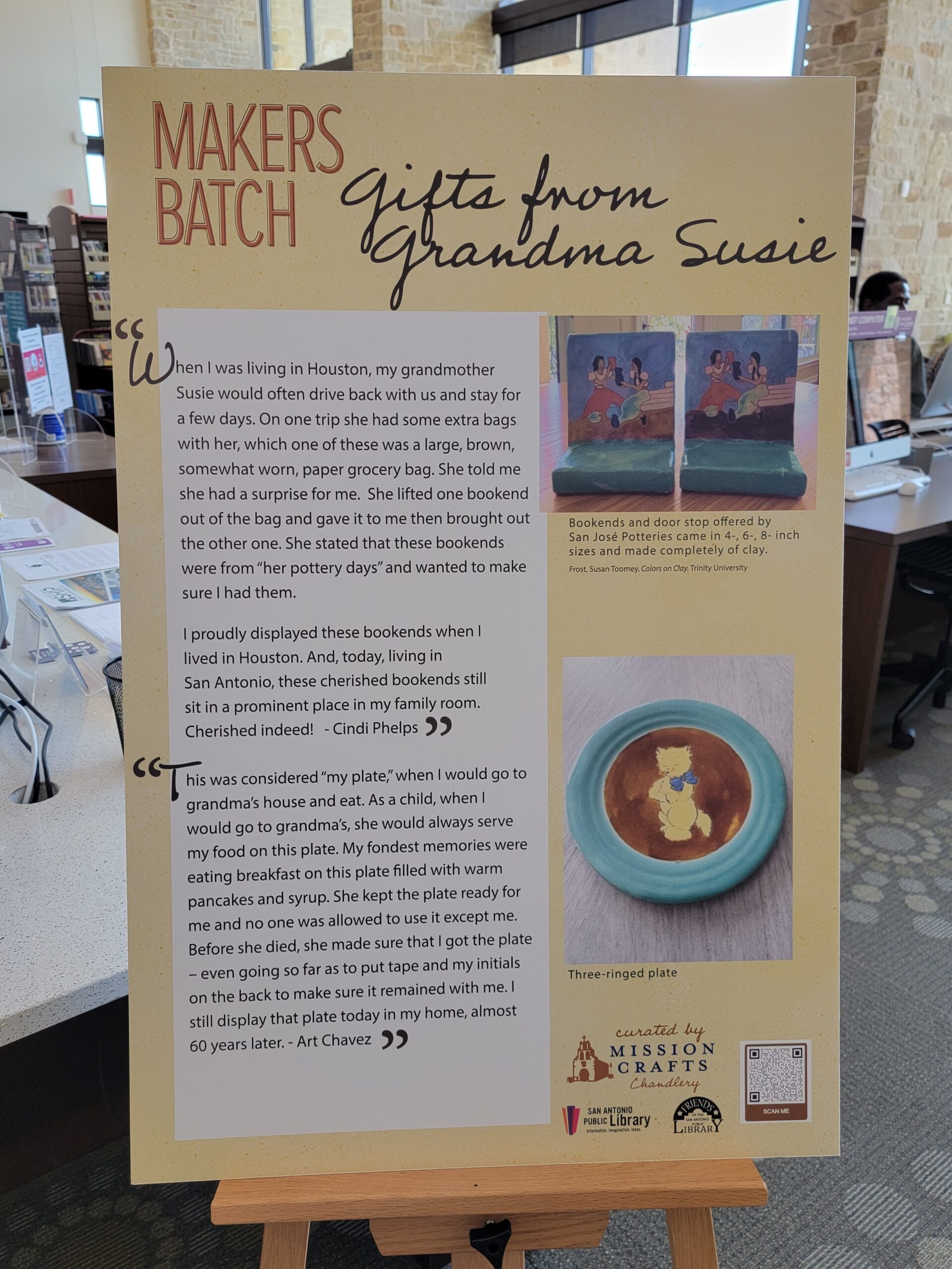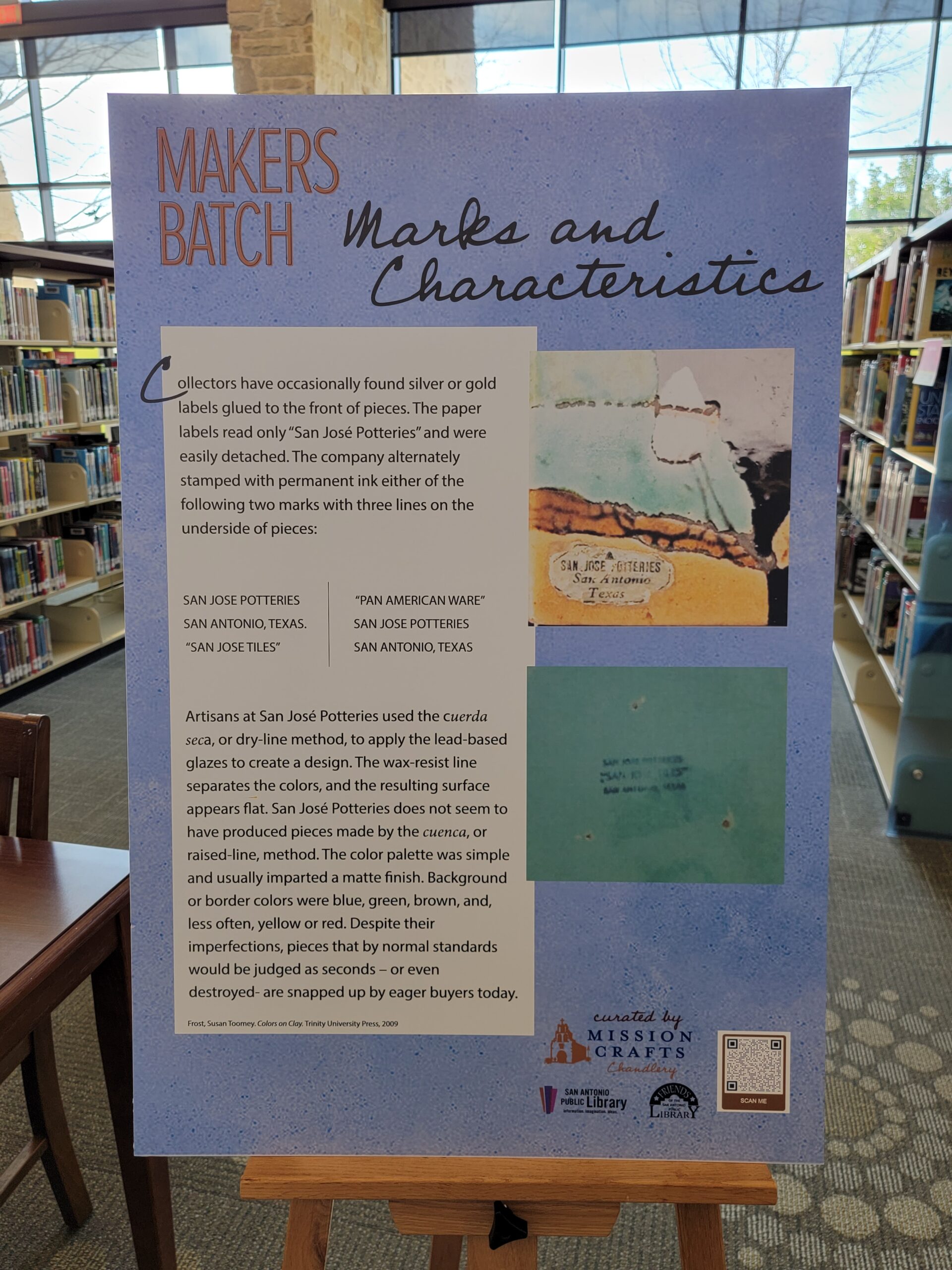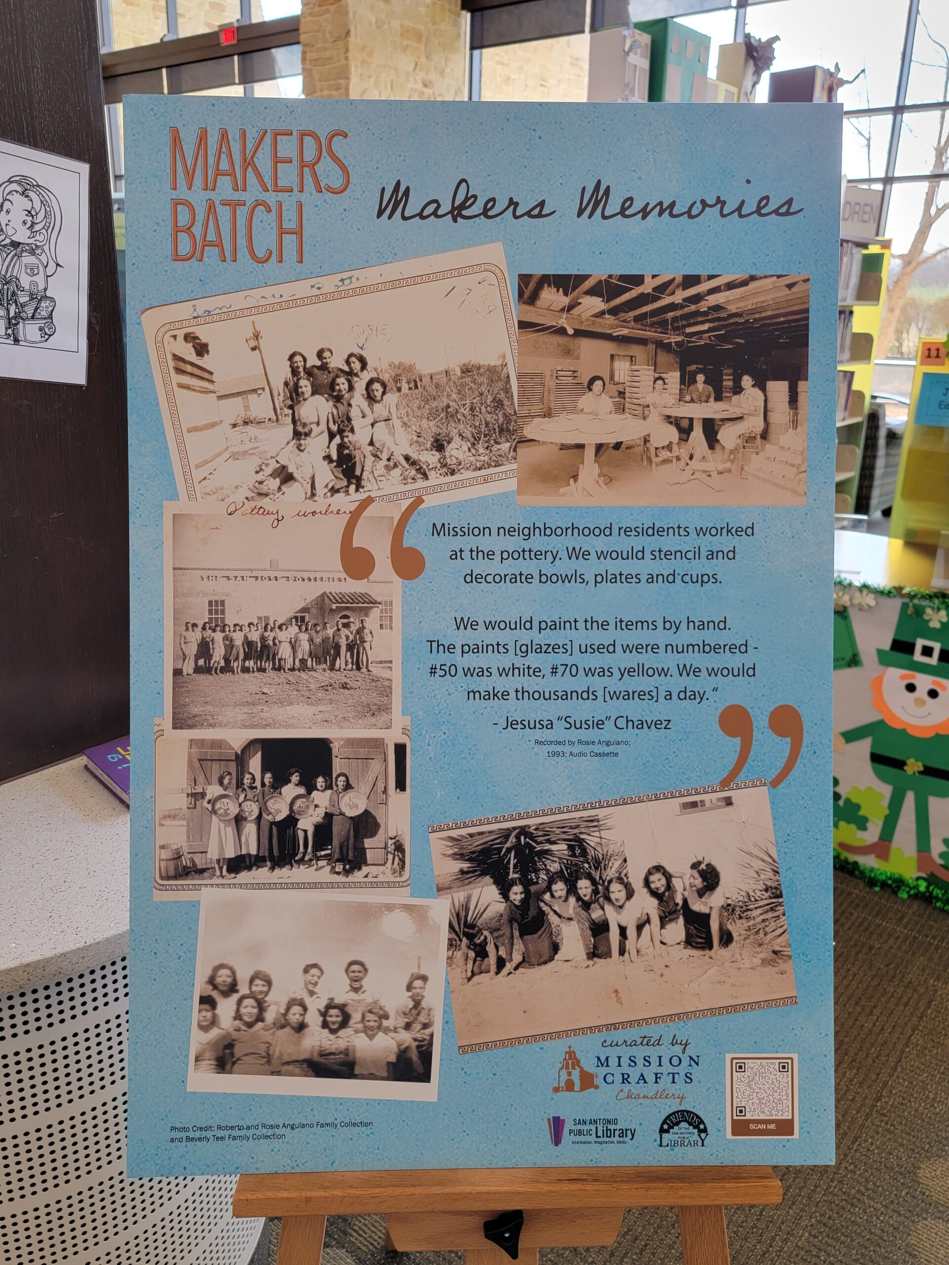 The Makers Batch: Hidden Stories of the Women Artisans of San José Potteries portrays the untold story of the creative women behind the San José Pottery Workshops and highlights their contributions to the arts and crafts movement of San Antonio. Visitors will learn about these local San José Neighborhood women who produced creative goods for the workshops and their deep family ties that connect them to settlers of the San Antonio Missions and to local history legends Domingo Bustillo, prominent military and political figure during the 1700s and Pedro Huizar, sculptor of the Mission San José Rose Window.