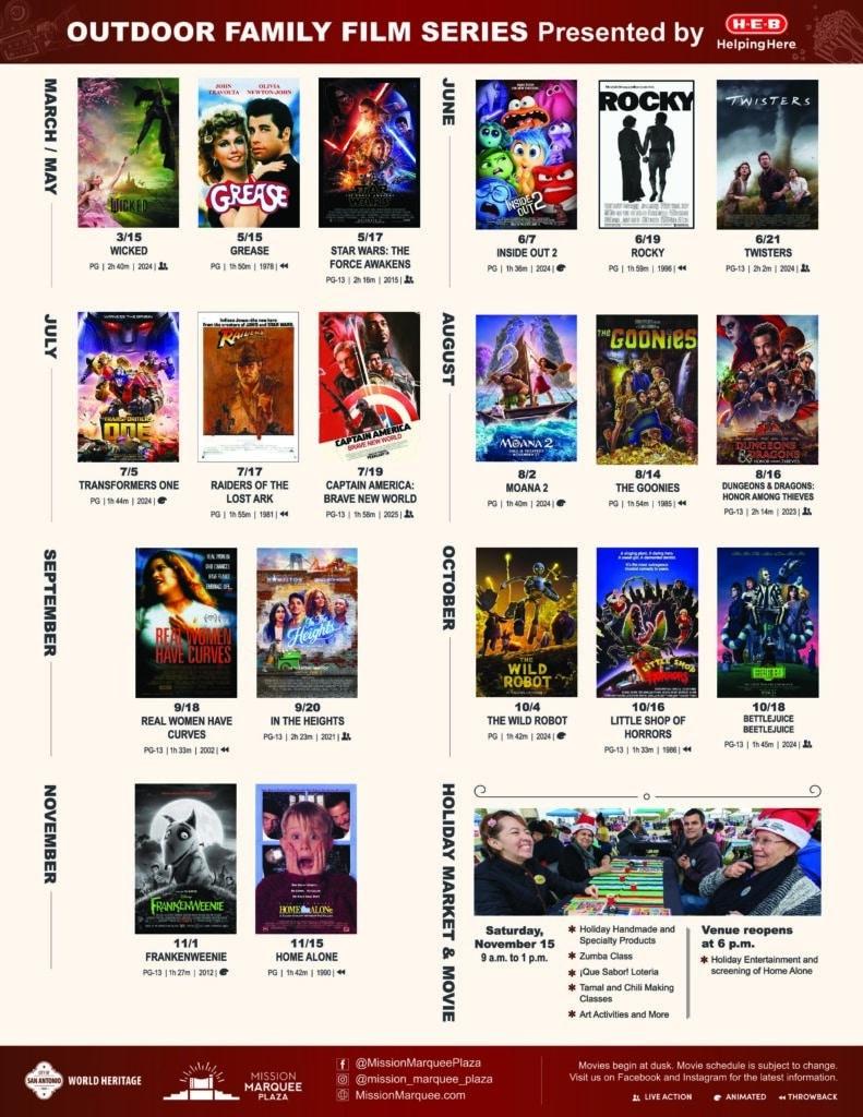 In partnership with H-E-B, the City of San Antonio’s World Heritage Office is bringing movie magic back to the Southside with the return of the Outdoor Family Film Series at Mission Marquee Plaza, 3100 Roosevelt Ave.
