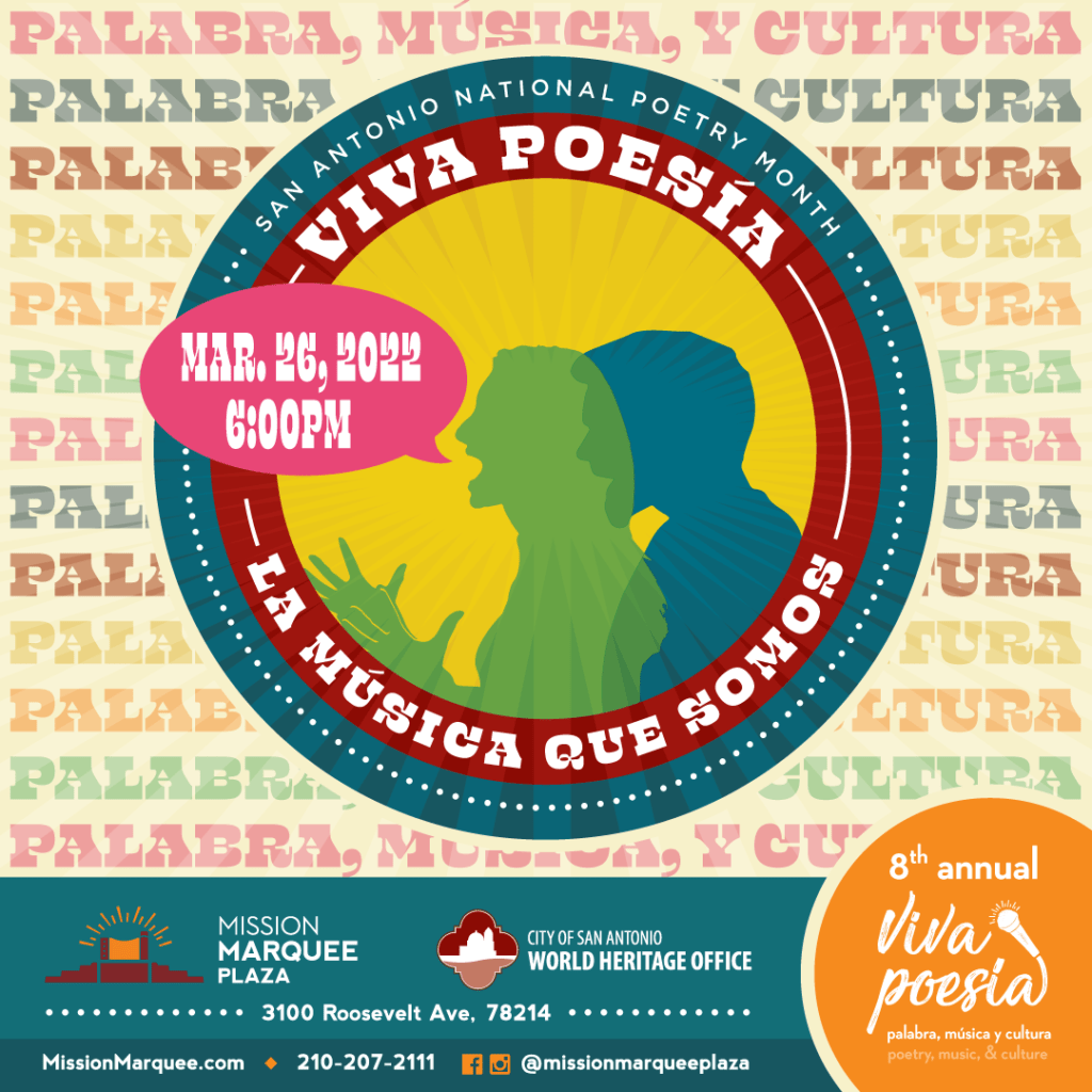 Viva Poesía is part of the kickoff to the new programming season at Mission Marquee Plaza, which began on March 5 with the Farmers & Artisans Market. This year’s season will include approximately 75 scheduled events. Other special cultural events will also include Selena Zumba on September 17, Dia de los Muertos on October 29, and others. The popular Mission Marquee Plaza Outdoor Family Film Series will begin on Saturday, May 7, with a free screening of “Encanto,” and continue through November.