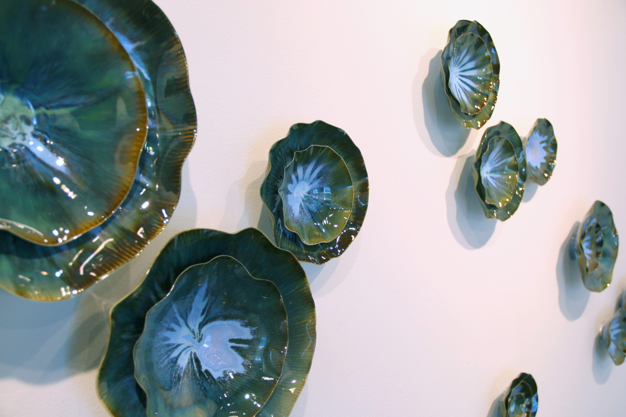 Lucrecia Waggoner’s porcelain sculptures transform a traditionally delicate medium into richly dimensional works of art. Composed of individually handcrafted vessels, either as singular pieces or intricate installations, her work draws from organic elements such as florals, landscapes, and celestial forms. Enhanced with 22k gold, palladium, and layered pigments, her sculptures embody a luminous interplay of light, texture, and movement, offering a refined sense of elegance and quiet beauty.