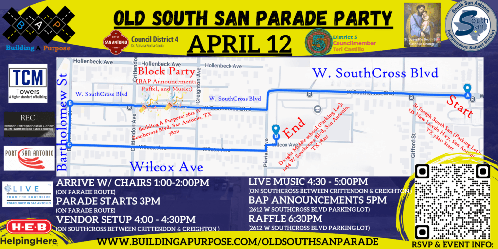 South San Antonio is a place of deep roots, strong traditions, and a community that takes pride in where they come from. The Old South San Parade Party, presented by Building a Purpose (BAP), is more than just a parade—it’s a homecoming for alumni, a celebration of local businesses, and an inspiration for the next generation of students.