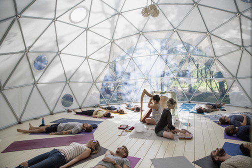 “During a sound bath one often falls into the brain state between wake and sleep. Having led people to this experience one hour at a time during sound meditations, I thought, why not do it all night long? Hence came the idea for Overnight Sound: A Sonic Slumber Party with a 1am Sound Bath Meditation,” says Martinez.