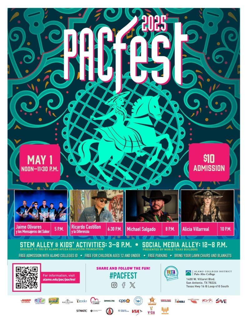 PACfest, one of San Antonio’s most anticipated events, is back and better than ever on May 1, 2025, at Palo Alto College. An official Fiesta® San Antonio event, PACfest offers nearly unrivaled value as the largest family-friendly celebration on the Southside, filled with music, food, entertainment, and community. The event will run from noon to 11:30 p.m. with an affordable $10 admission fee, free parking, and free admission for children ages 12 and under. Current Alamo Colleges District Employees and Students with a valid Alamo Colleges ID will also receive free admission.