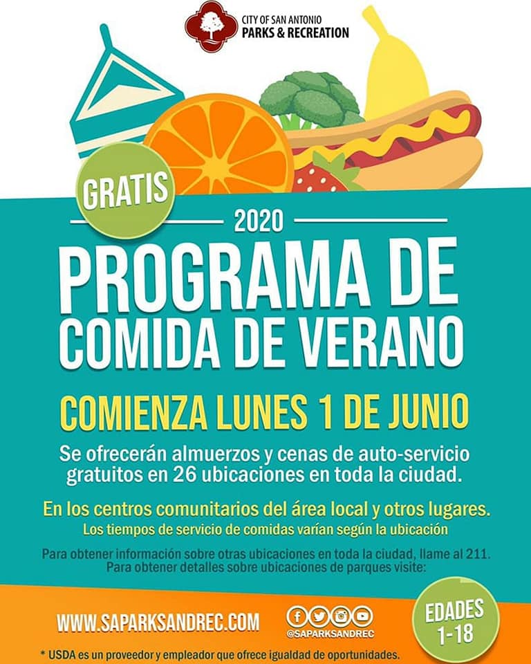For information on food distribution sites throughout the city, please call 211. For details on Parks and Recreation “Grab and Go” locations and times, please visit saparksandrec.com.