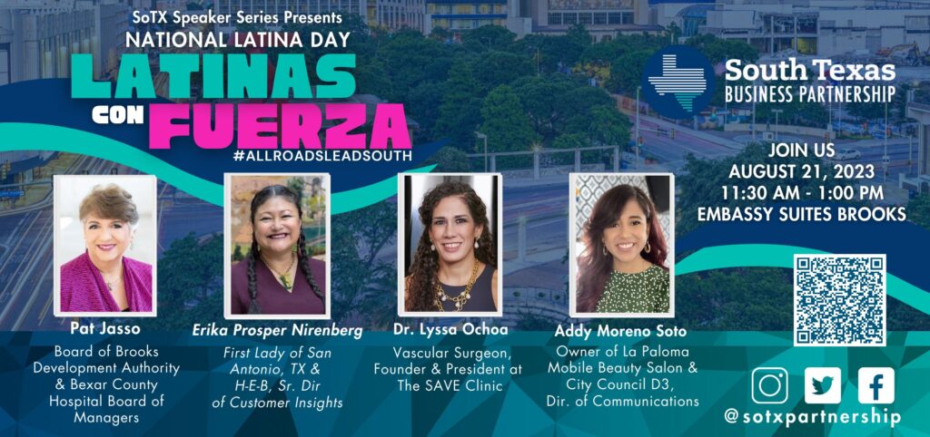 It will highlight issues impacting Latina entrepreneurs and feature a panel of distinguished guests making an impact in San Antonio and South Texas. Panelists will include Dr. Lyssa Ochoa, Addinelly Moreno Soto, Erika Prosper Nirenberg, and Pat Jasso.