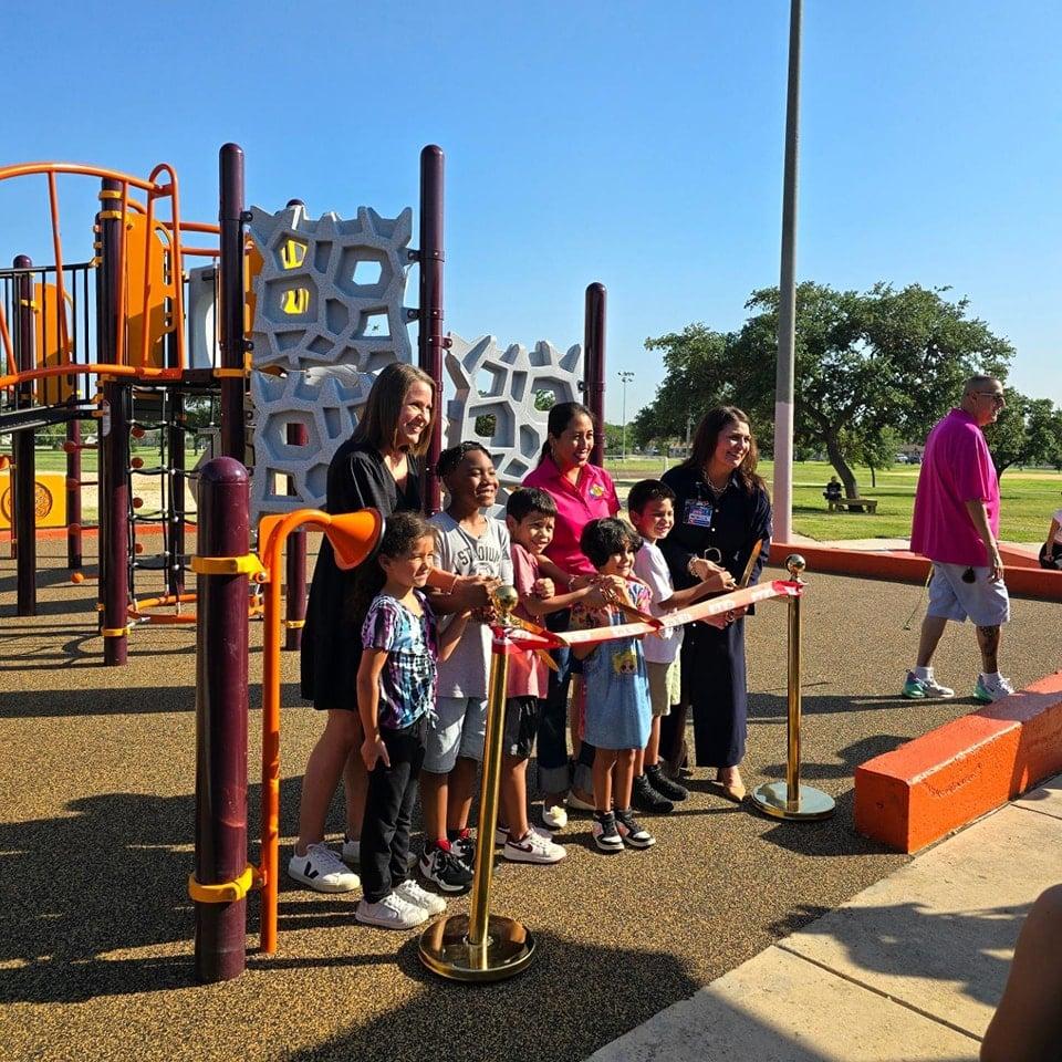 In partnership with H-E-B, the City of San Antonio Parks and Recreation Department is excited to announce the grand opening of a new accessible playground at Arnold Park near Ramirez Community Center, 1011 Gillette Blvd, San Antonio, TX, on Tuesday, June 9, 2024. This momentous event had a ribbon-cutting ceremony and a community celebration, offering complimentary refreshments, giveaways, and a special appearance by H-E-Buddy. H-E-B also presented a generous donation to the Parks and Recreation Department, supporting summer programming at community centers.