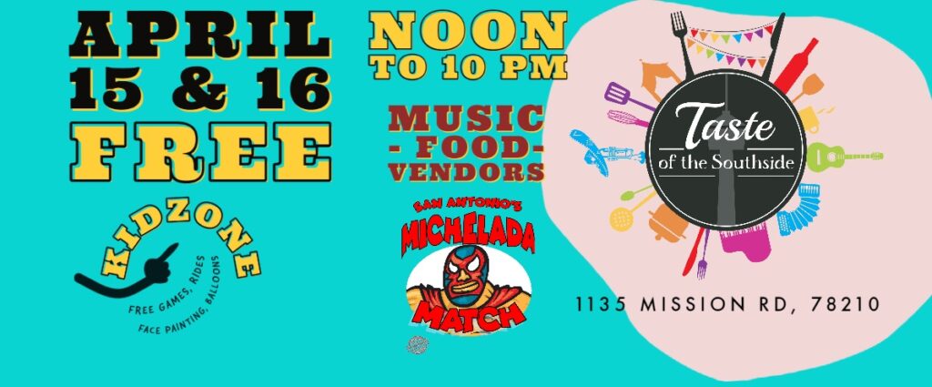Experience San Antonio’s vibrant South Side culture, food, art, and music while benefiting the students and campus of Por Vida Academy at Taste of the Southside, Saturday, April 15th, and Sunday, April 16th, 12:00 p.m. to 10:00 p.m. at 1135 Mission Road.., FREE ADMISSION. There will be rides, games & activities for children at our KIDZONE! FREE for Children 2 to 10 – All You Can Ride! Arts & Crafts Vendors, Food, Beverages & MUSIC – Fun for the entire Family. Be The Judge at SA’s 3rd Annual MICHELADA MATCH. Live Performances By LOS PALOMINOS & ERICK Y SU GRUPO MASORE, plus great SA Talent. https://tasteofthesouthside.org.