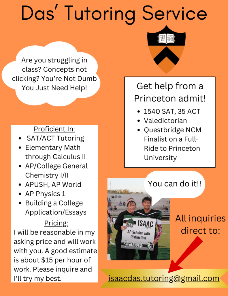 For further information about his tutoring services and contact options, please visit his link tree: https://linktr.ee/Marc2292 or email at isaacdas.tutoring@gmail.com for inquiries. Images courtesy of Isaac Das.