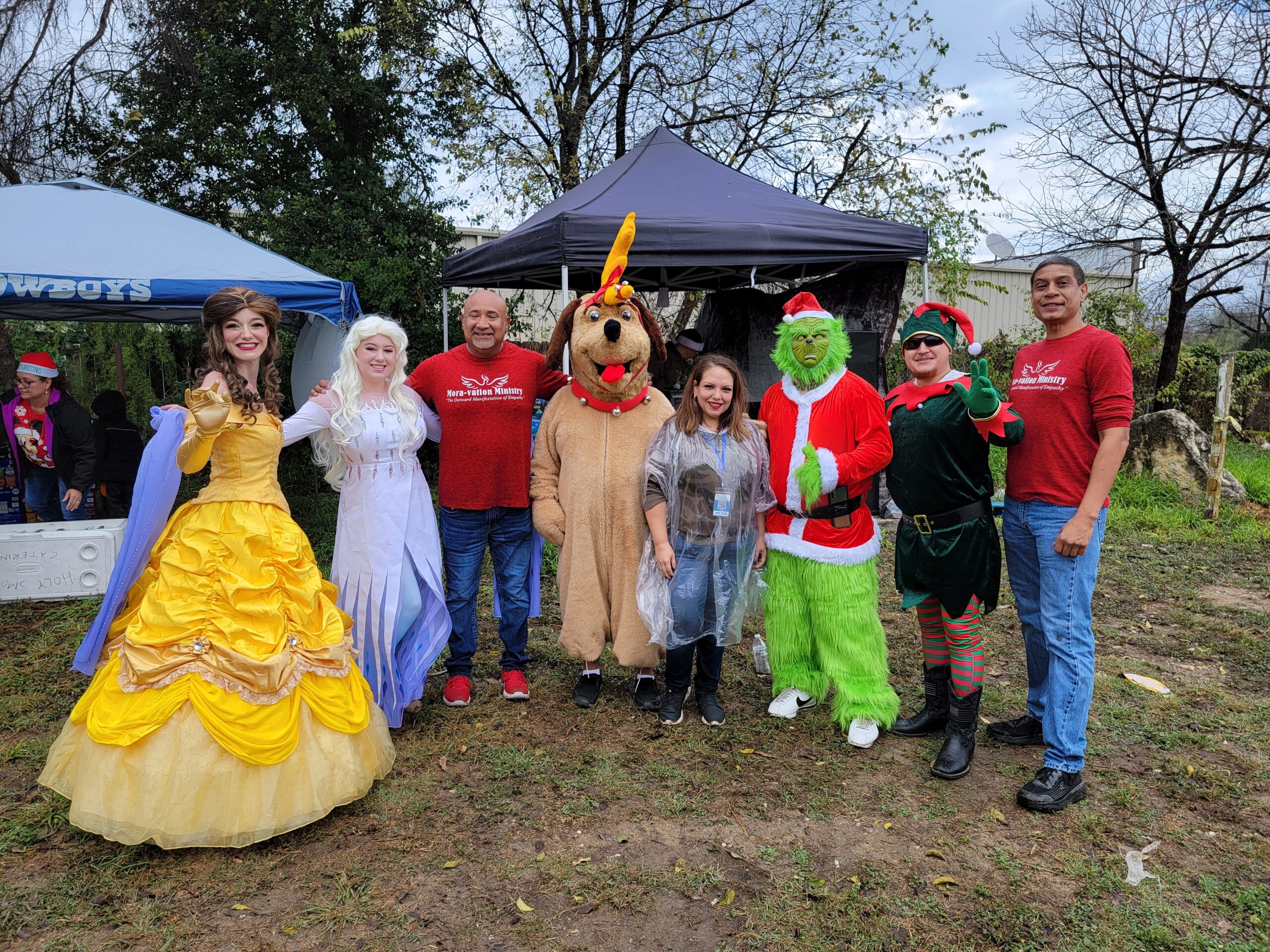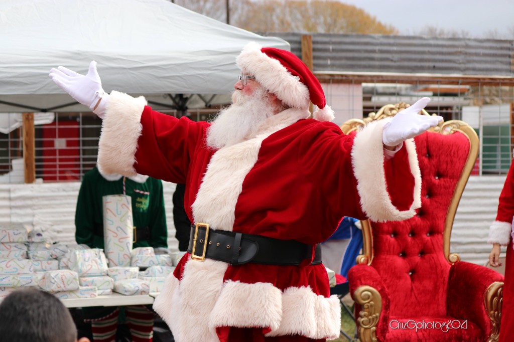 The cold front and rain made the event a little challenging but that didn’t stop the families from attending. Children (and parents) were a bit on the wet and muddy side yet full of the Christmas spirit, enjoying free food courtesy of Brisket Plug, as well as Santa, Mrs. Claus, Disney Princesses and friends. Special appearances were made by Judge Sakai, Judge Chapa, and other community leaders.