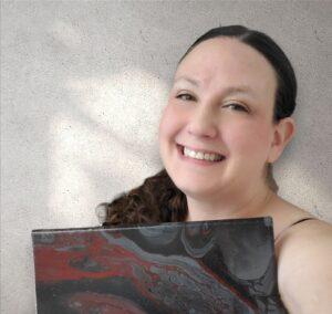 Elizabeth specializes in fluid acrylic painting, where paint densities create unexpected interactions and stunning effects. Her work is available on canvas, as prints, and in custom formats like earrings or personalized art pieces featuring loved ones.