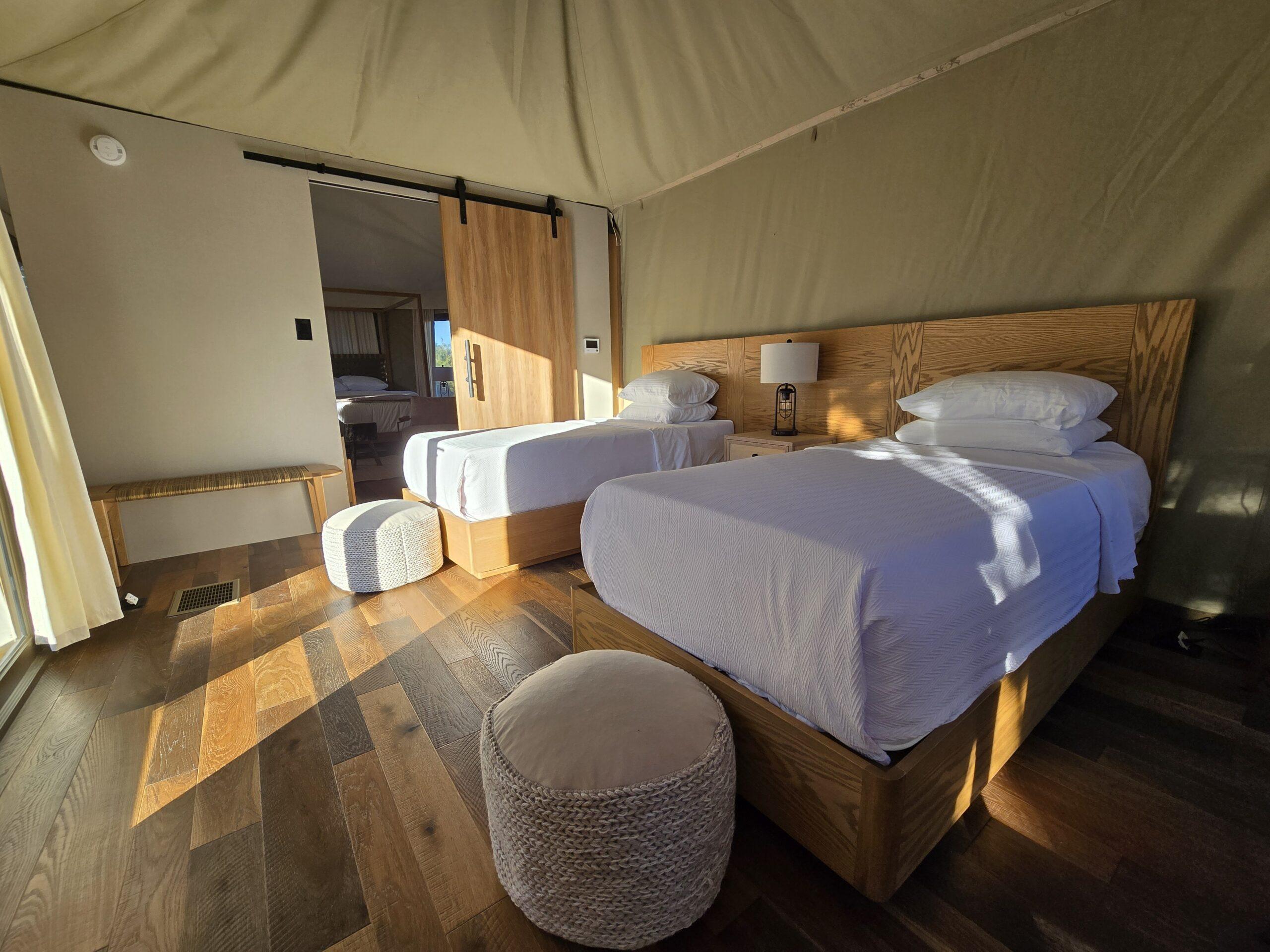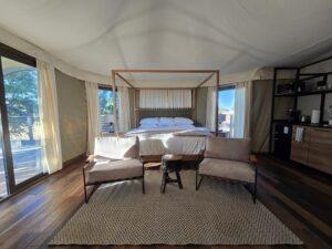 Nestled on 34 acres of pristine Hill Country beauty, Outdoorsy Hill Country provides a one-of-a-kind retreat that blends nature’s serenity with modern luxury’s sophistication. What truly sets this tranquil getaway apart is the thoughtful touch of a designated parking area and a personal digital golf cart assigned to each tent. We had an absolute blast loading up our luggage and exploring the picturesque Texas Hill Country on the way to our luxurious tent. Adding to the charm, the view from our private deck came with a delightful bonus: deer gracefully visiting the feeders nearby.