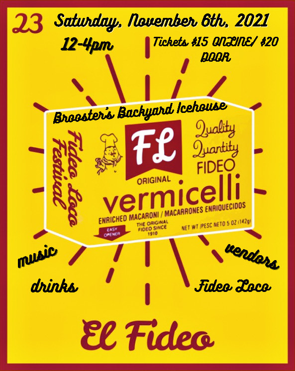 Are you loco for Fideo Loco? The 4th annual Fideo Loco Festival is excited to bring this year’s event to the Southside on November 6th, 2021, from 12pm – 4pm at Brooster’s Backyard Icehouse located at 815 Pleasanton Road, San Antonio, Texas 78214. Website: http://fideoloco.com