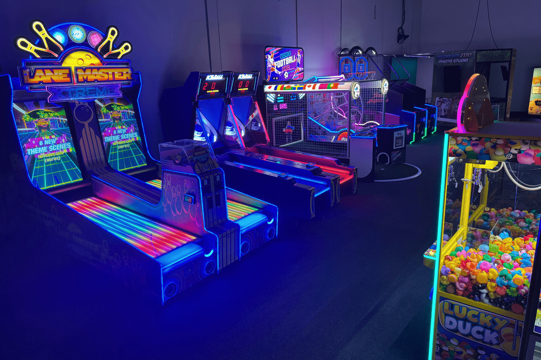 - An arcade with 30 games, blending traditional fun with futuristic excitement