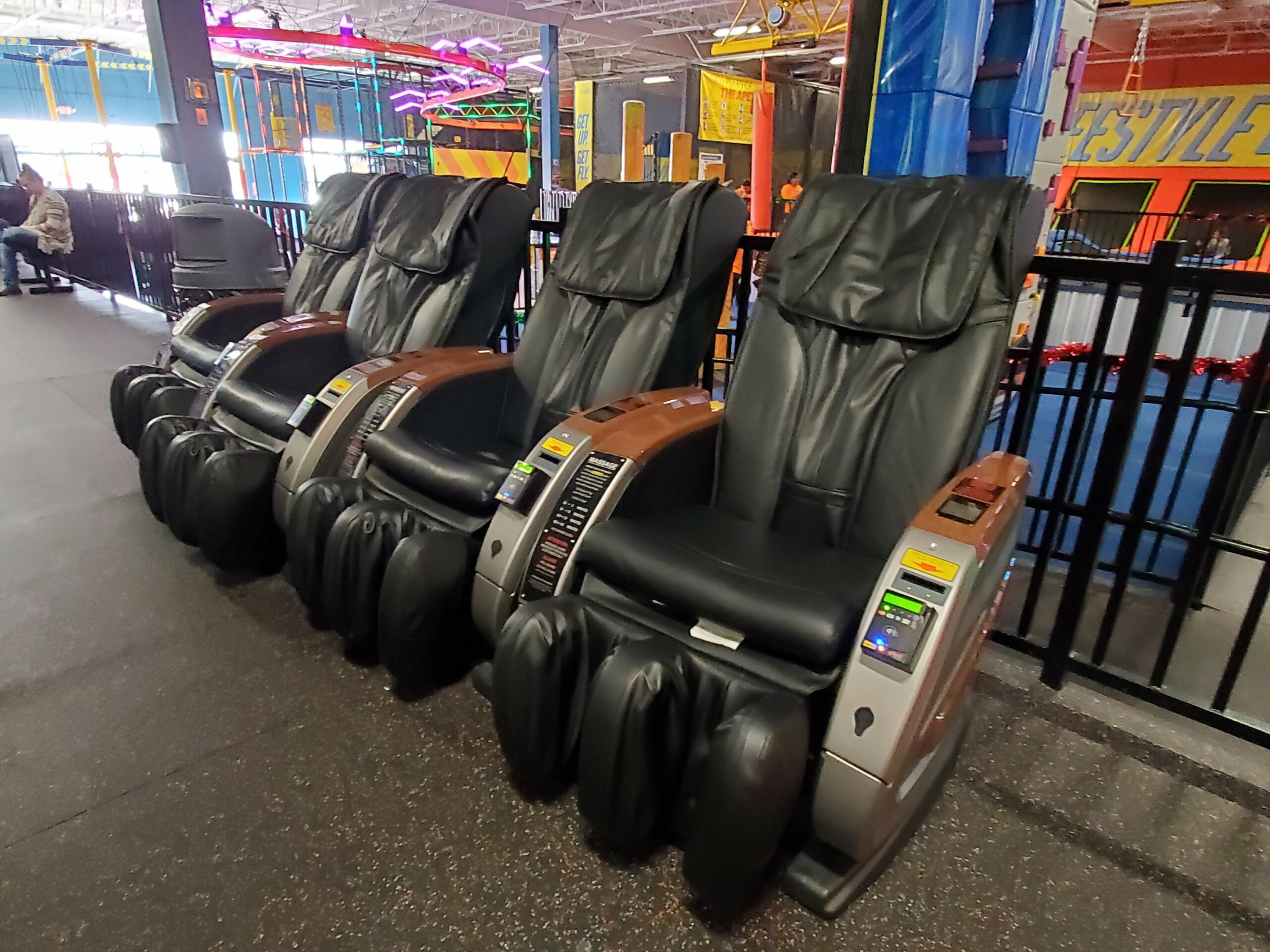 - Massage Chairs. Need some relaxation while you sit and watch your kids play? Take advantage of their high-tech super relaxing massage chairs. After a few minutes on one, you won’t want to get up off it.