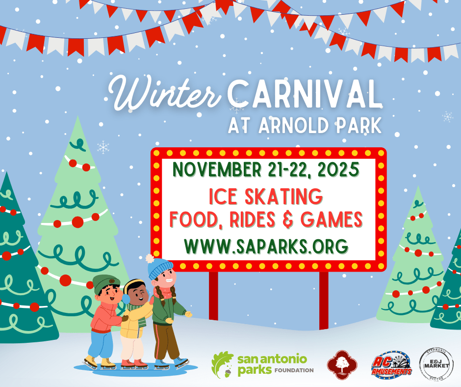 Whether gliding across the ice, enjoying a ride under twinkling lights, or sipping hot cocoa with family and friends, the Winter Carnival at Arnold Park is the perfect way to kick off the holiday season. Bring your loved ones and make this your new favorite San Antonio holiday tradition.