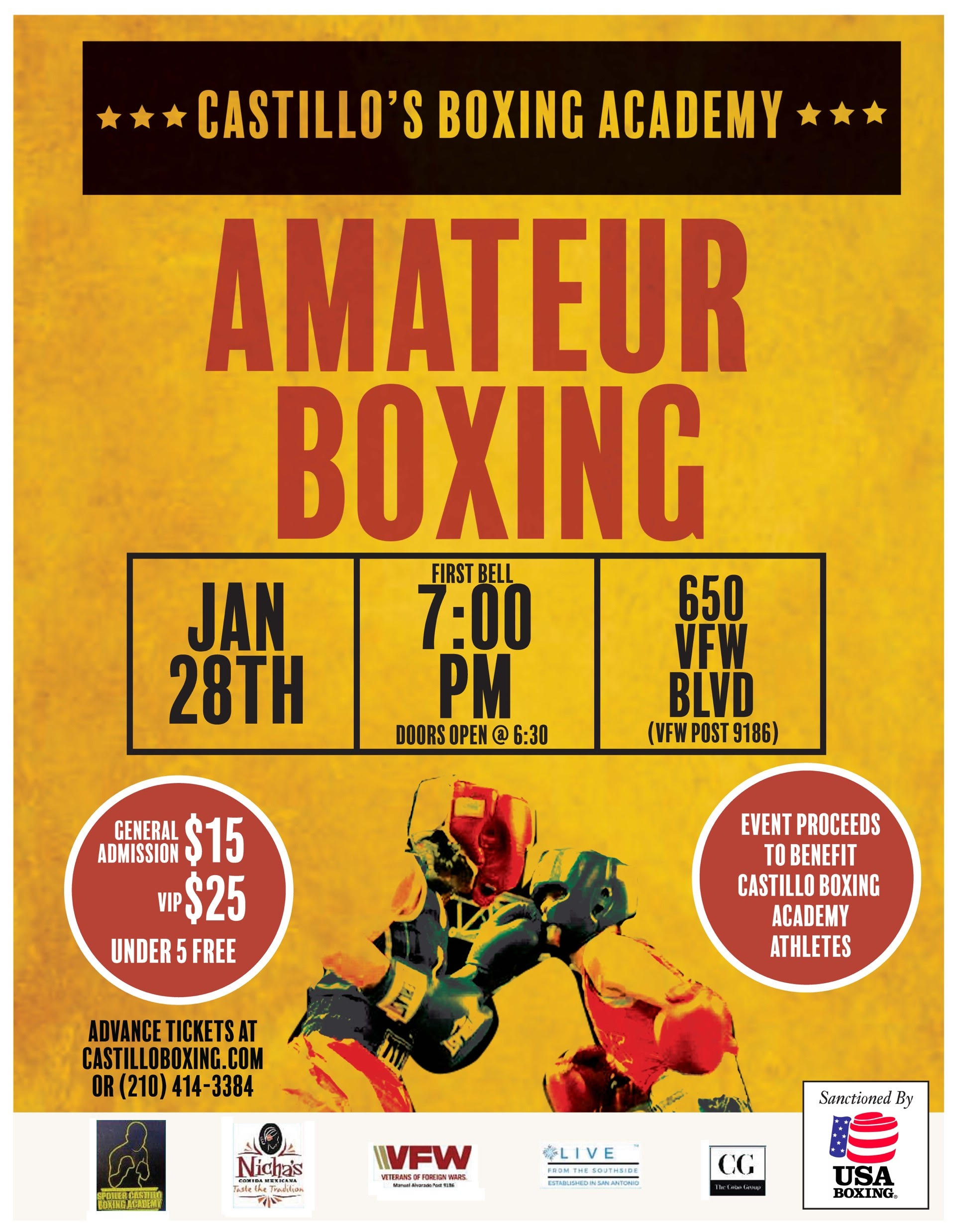 Friday Night Amateur Boxing Show invites the public for this fundraising on behalf of all our athletes. First bell at 7:00 PM. For more information, you can follow us at www.castilloboxing.com or on Facebook. Don’t miss it!