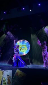 After seeing everything they had to offer, we ventured out to explore and try some of their exclusive bites. We tried a few different items, including Bacon-Wrapped Boudin Balls, Beignets, and Chicken Crackling Red Beans and Rice. The food at the park never disappoints; they consistently raise the bar on flavor and creativity. Every dish was phenomenal, especially for it being our first time at Mardi Gras. After trying the variety of foods, we headed to the award-winning voodoo dolls show at ‘Rockville High School’. The show offered great photo ops and included top-tier decor. From the dancing and singing to the amazing costumes, this show was extraordinarily enriching. It brought a transcendent New Orleans theme with a modern touch. Overall, the performance fully justified its award-winning reputation.